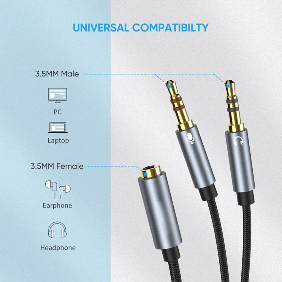 NameOppselve Earphone Adapter Audio 3.5mm Female to 2 Male