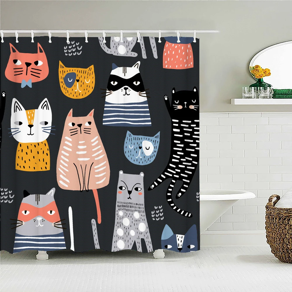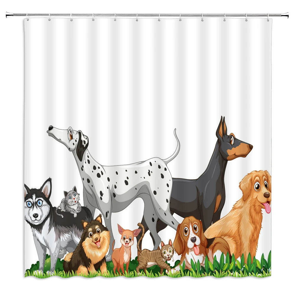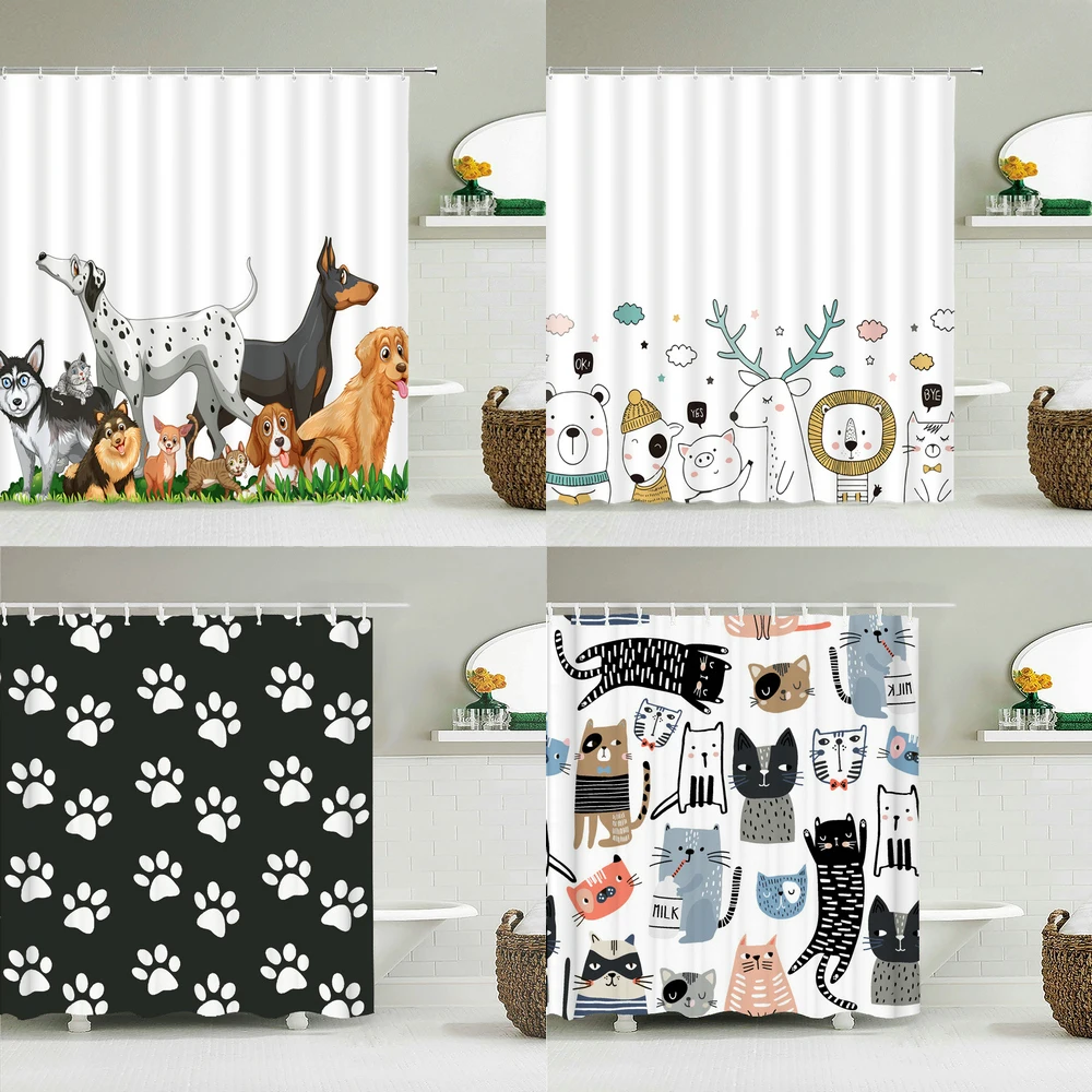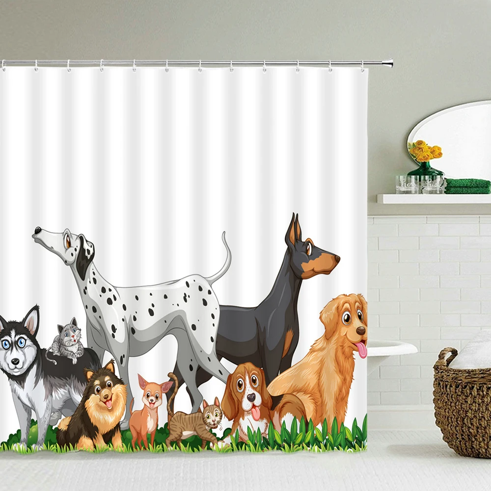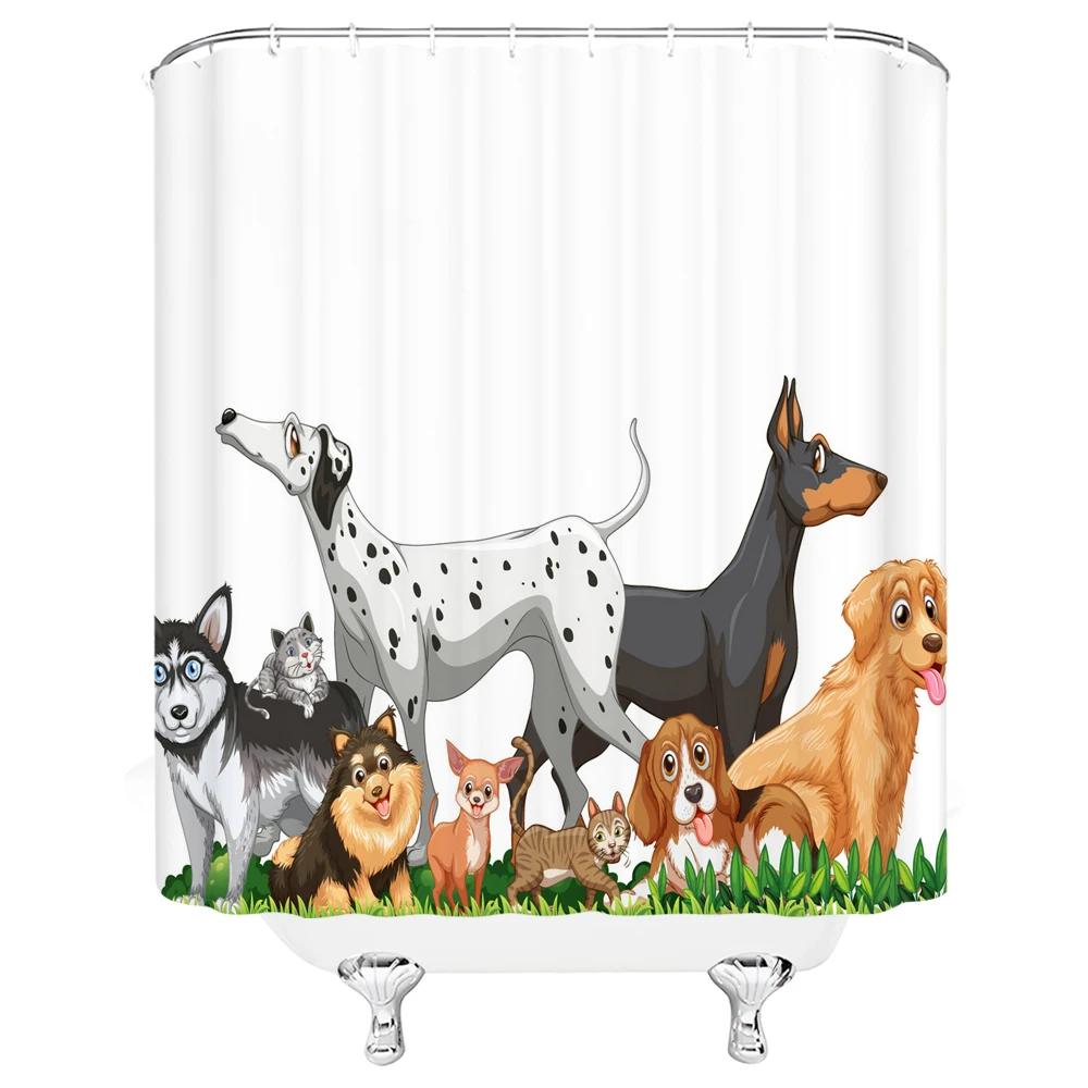 Занавеска для душа из полиэстера, водонепроницаемая, с мультяшным принтом собаки, кошки, большой размер 240 х180, с крючком