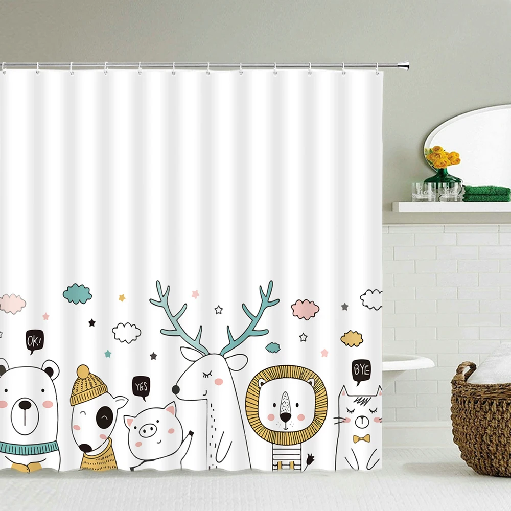 Мультяшная собака кошка занавеска для душа прекрасный ребенок мальчик занавеска для душа Ванная комната Водонепроницаемый полиэстер ткань большой размер с крючком