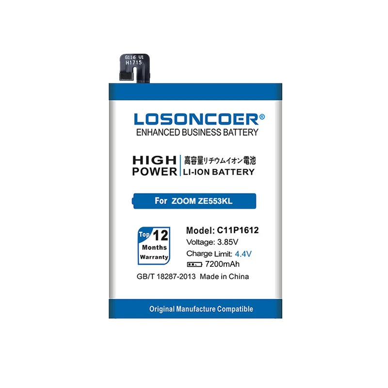 Аккумулятор LOSONCOER 7200 мАч C11P1612 для телефона ASUS Zenfone 4 Max Pro Plus X00ID ZC554KL для ASUS Zenfone 3 Zoom ZE553KL Z01HDA