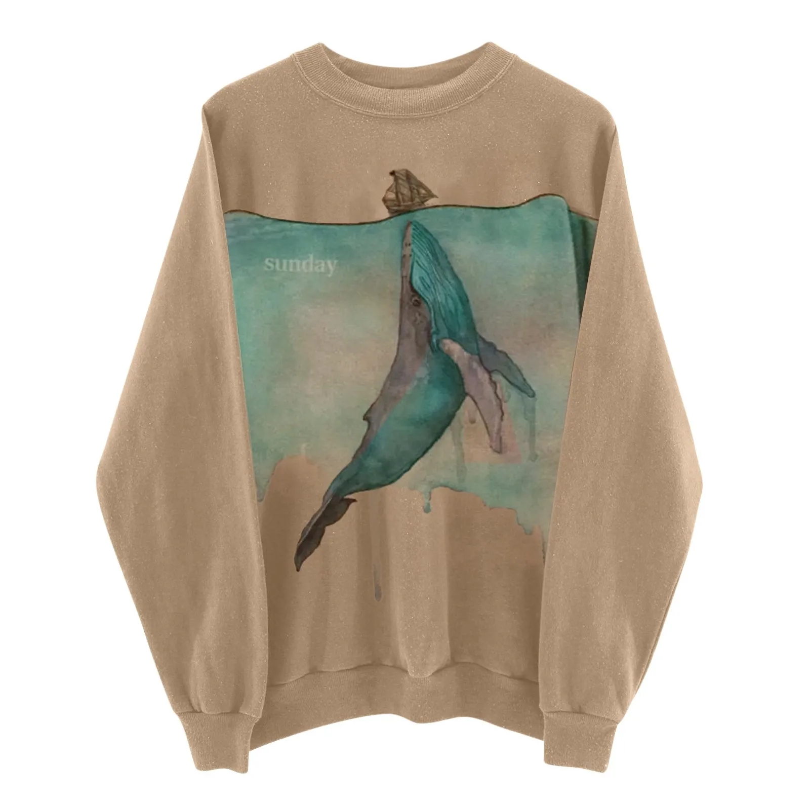 Женская толстовка с принтом в виде рыб, винтажная Повседневная Толстовка с длинным рукавом, пуловер в стиле Харадзюку, ретро-худи