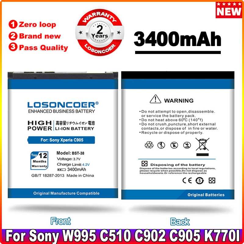 3400 мАч BST-38 BST 38 для Sony Ericsson W580 Battert W760 T650 X10 W980 W995 C902 C905 C905c K770I K850 Z770i K770 S500c батарея