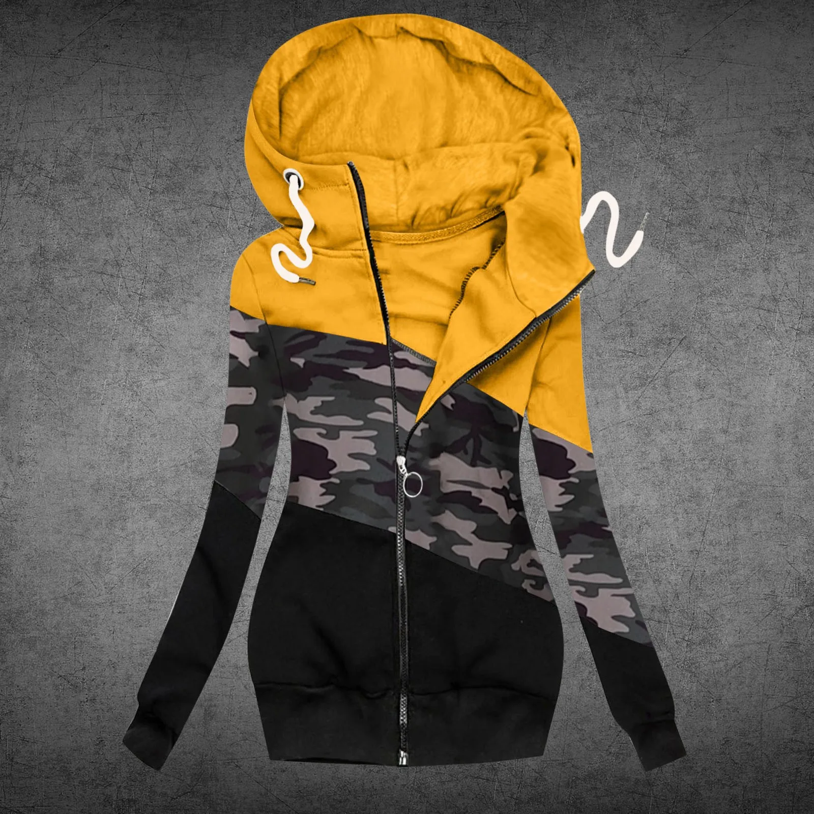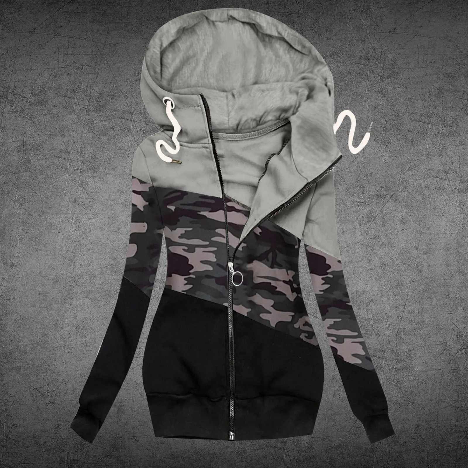Лидер продаж, модные зимние повседневные толстовки для женщин, камуфляжный принт, худи, куртка на молнии, Женский свитшот с длинным рукавом, пальто в стиле Харадзюку