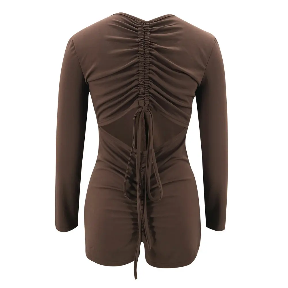 Характеристики:Материал: полиэстерСезон: Весна/Лето/ОсеньПол: женскийЦвет: коричневыйРисунок: однотонныйВоротник: глубокий v-образный вырезДлина рукава: длинныйДлина брюк: короткиеСтиль: Повседневный/Модный/сексуальныйПрименение: ежедневно/Вечеринки/отдых/море/на открытом воздухе/Праздники/ночные клубы/домашняя одежда