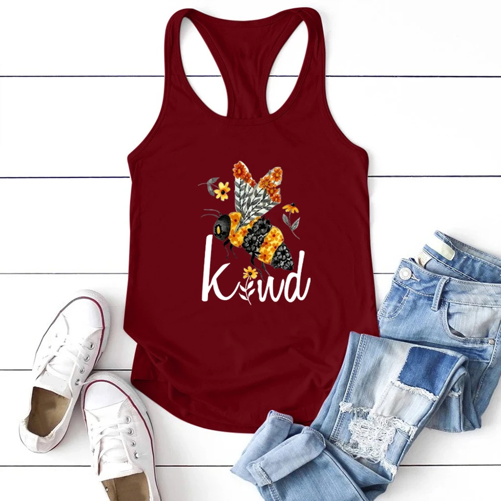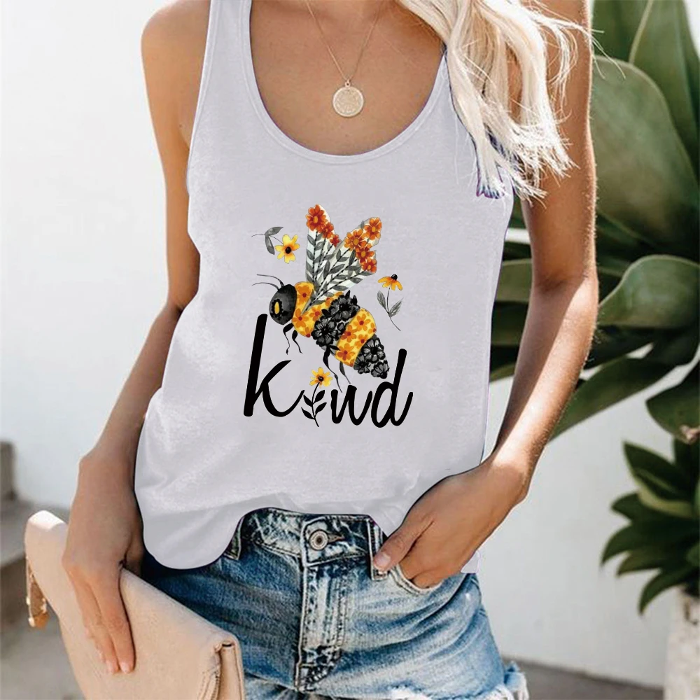 Женские майки с цветочным принтом Bee Kind, повседневные летние спортивные топы без рукавов, с круглым вырезом, женская уличная одежда, 2021