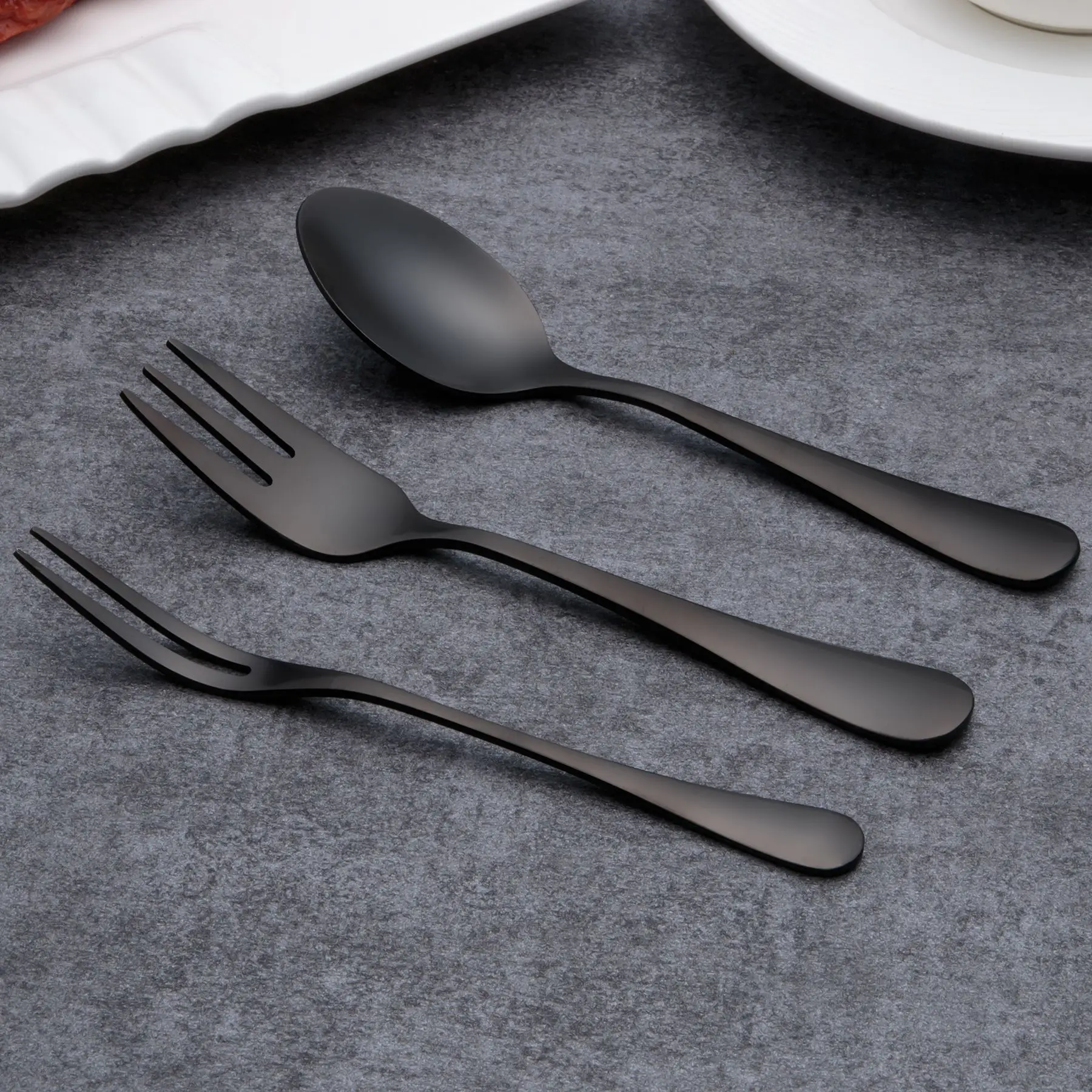 3024 шт черные блестящие посуда Нержавеющаясталь столовых приборов в западном стиле Стиль Еда стейк Ножи вилка десертные вилки для фруктов столовая посуда