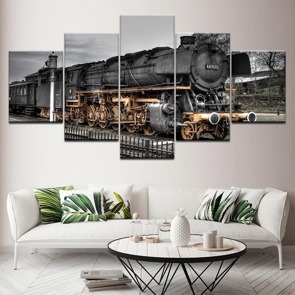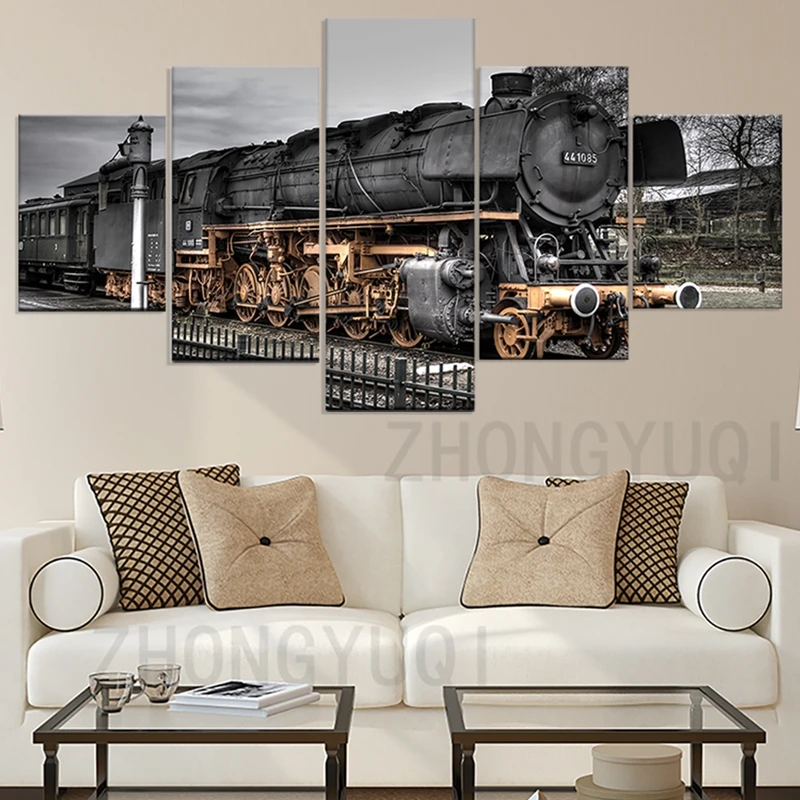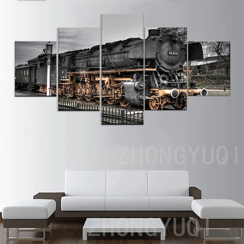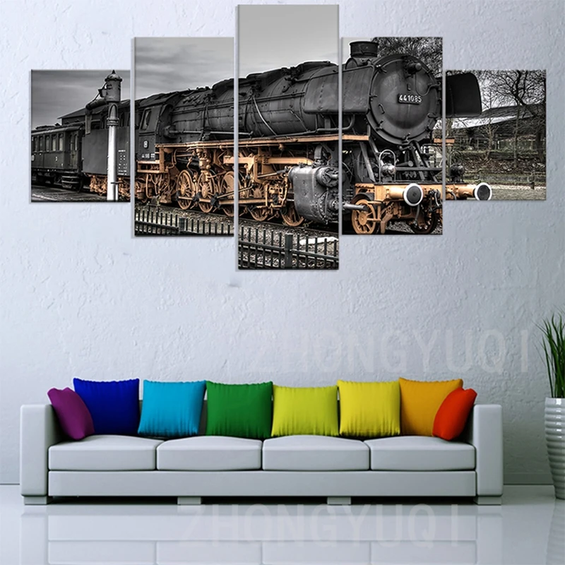 Картины на холсте для домашнего декора, 5 панелей в стиле ретро, настенный модульный постер с паровозом, художественные работы, для детской комнаты, спальни
