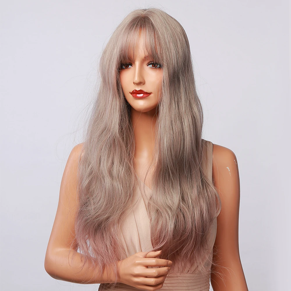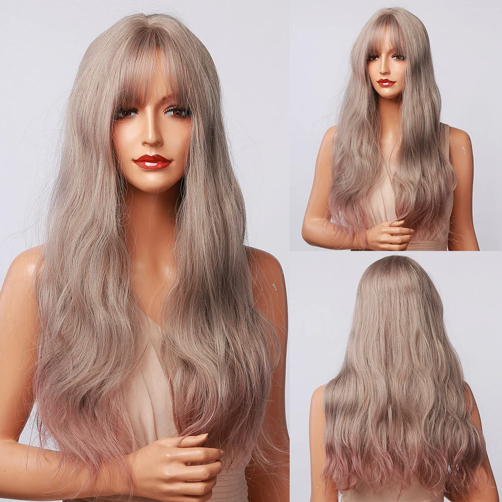 Длинные волнистые парики henmargu с эффектом омбре, светлые, серые, розовые парики с челкой, синтетический натуральный парик для женщин, парики для косплея, термостойкие волосы