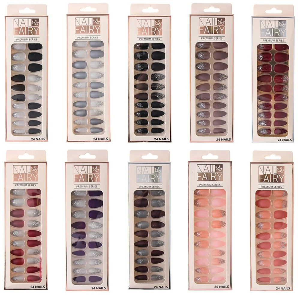 Набор накладных ногтей с полным покрытием, 24 шт.компл., Блестящий Матовый накладных ногтей с рисунком, Многоразовые Накладные ногти для наращивания