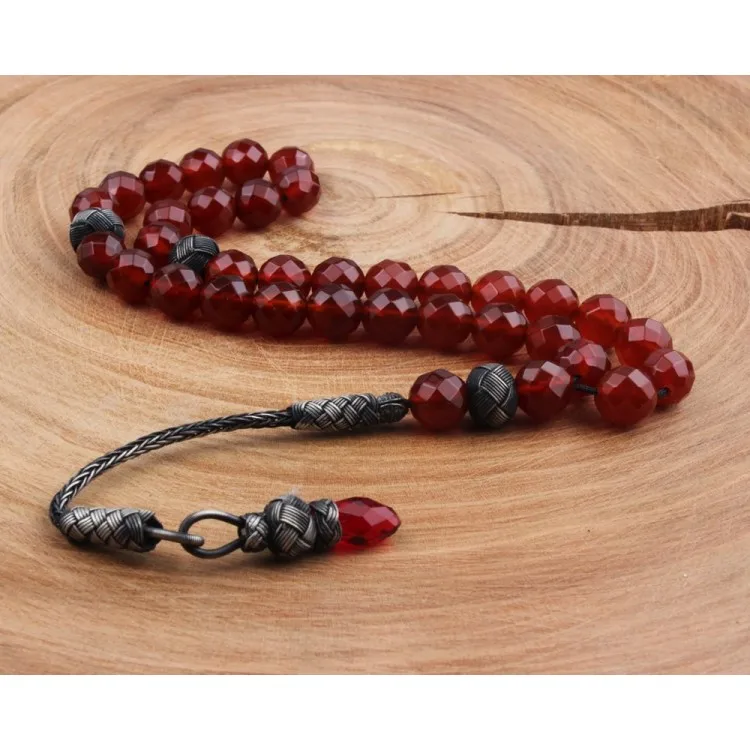 Мусульманская молитва из агата, 33 бусины в турецком стиле, тасбих, мисбаха, исламские украшения, субха, огранка, кисточка из серебра 925 пробы