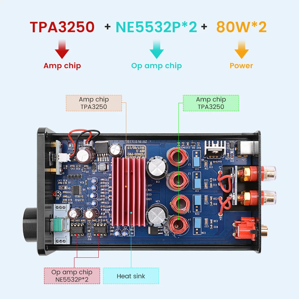 Цифровой усилитель звука TPA3250 NE5532, 24В постоянного тока, 4A, 80 Вт * 2, Hi-Fi Стерео усилители высокой мощности 2,0, домашний профессиональный усилитель