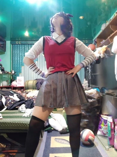 Полный комплект включает в себя: жилет + рубашка + юбка + чешуя + головной убор + браслет + носки + парик