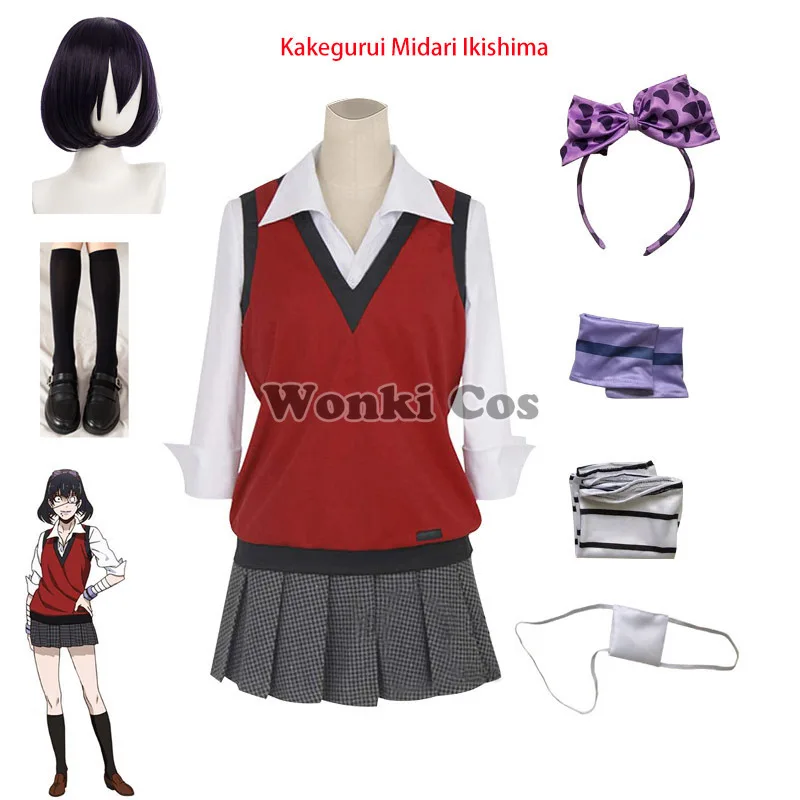 Аниме Kakegurui компульсивный игрок Косплей мидари икишима Косплей Костюм Школьная форма платье жилет Женская Хэллоуин JK униформа