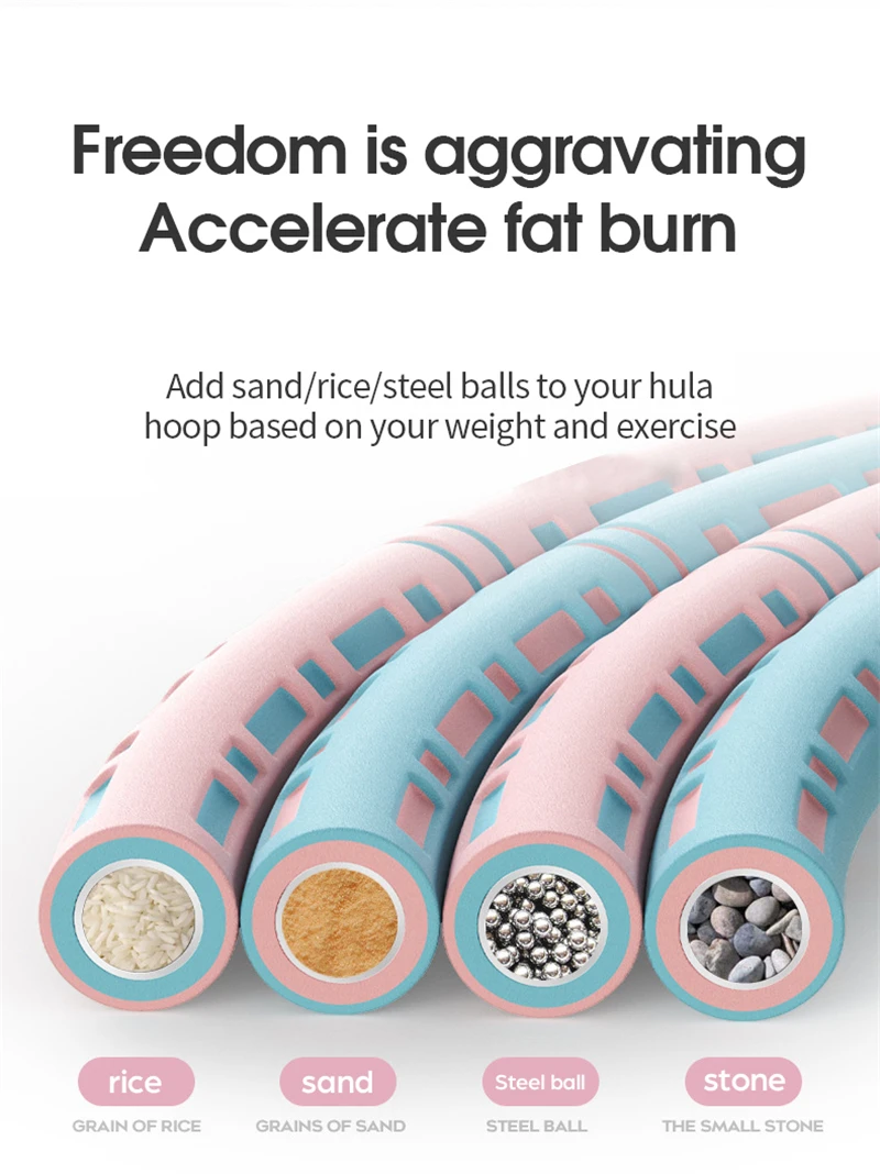 Диаметр: около 94 см Характеристики: Съемный в 6 частях Материал: трубчатая сталь + пенопласт NBR, очень устойчив к растрескиванию Особенности: 1. Внутренняя труба из высококачественной нержавеющей стали не легко сгибаться и ломаться, и она прочнее и прочнее, чем обычные внутренние трубы. 2. Высокая эластичная Толстая пена, толстая трубка из нержавеющей стали, вогнутая выпуклая Массажная плавающая точка, эффективные упражнения, можно массировать талию сотни раз за одну минуту, глубоко стимулировать мышцы, массировать точки талии 3. Утолщенная двухслойная пена, амортизация и защита талии, улучшая комфорт, не повреждая талию и живот 4. Скрытая Съемная кнопка, свобода ускоряет сжигание жира добавить песок/рис/стальные шарики на ваш обруч ДЛЯ ФИТНЕССА на основе вашего веса и физических упражнений 5. Модные цвета и красивый внешний вид