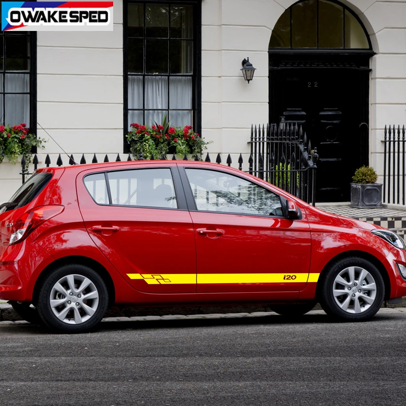 Спортивные полосы автомобиля дверь боковая юбка наклейка для-Hyundai I20 Авто тела Декор виниловые наклейки внешние аксессуары