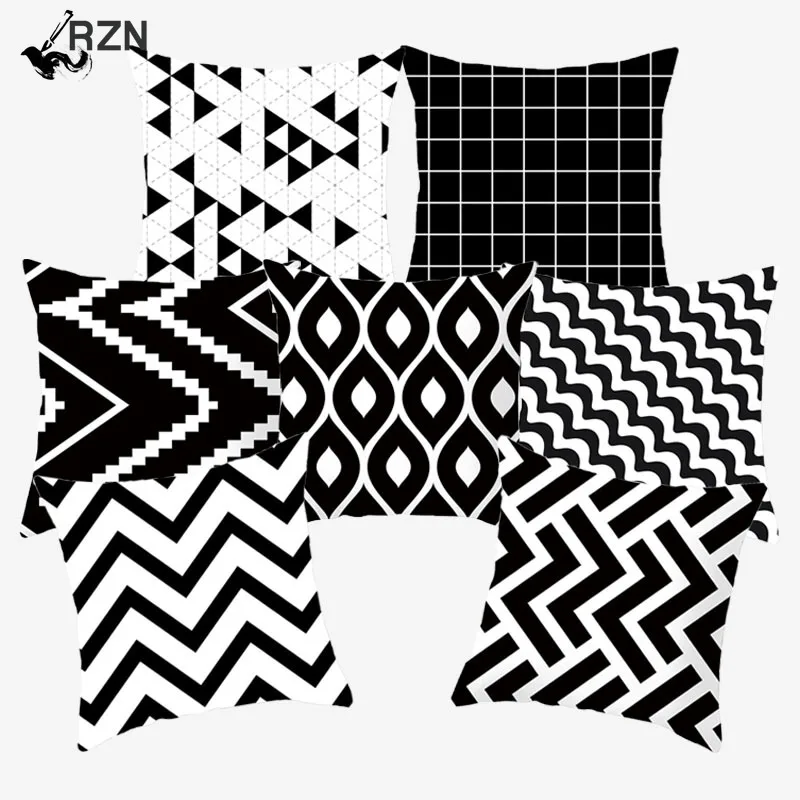Черно-белая декоративная подушка, искусственная наволочка для дивана, полиэфир, 45*45, наволочки для диванных подушек 10040