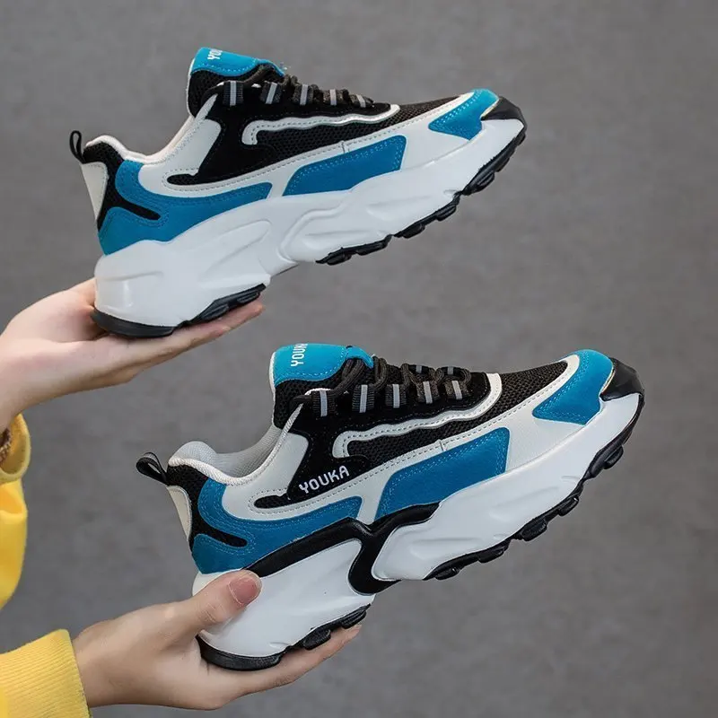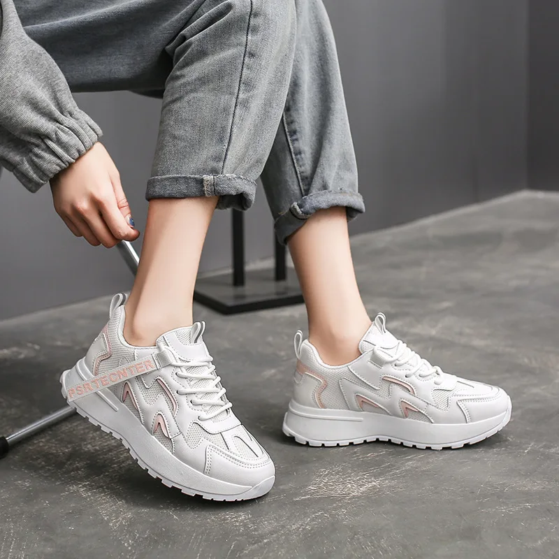 Кроссовки женские на платформе, дышащие сетчатые, повседневные Черные, белые, без шнуровки, летние легкие, для студентов