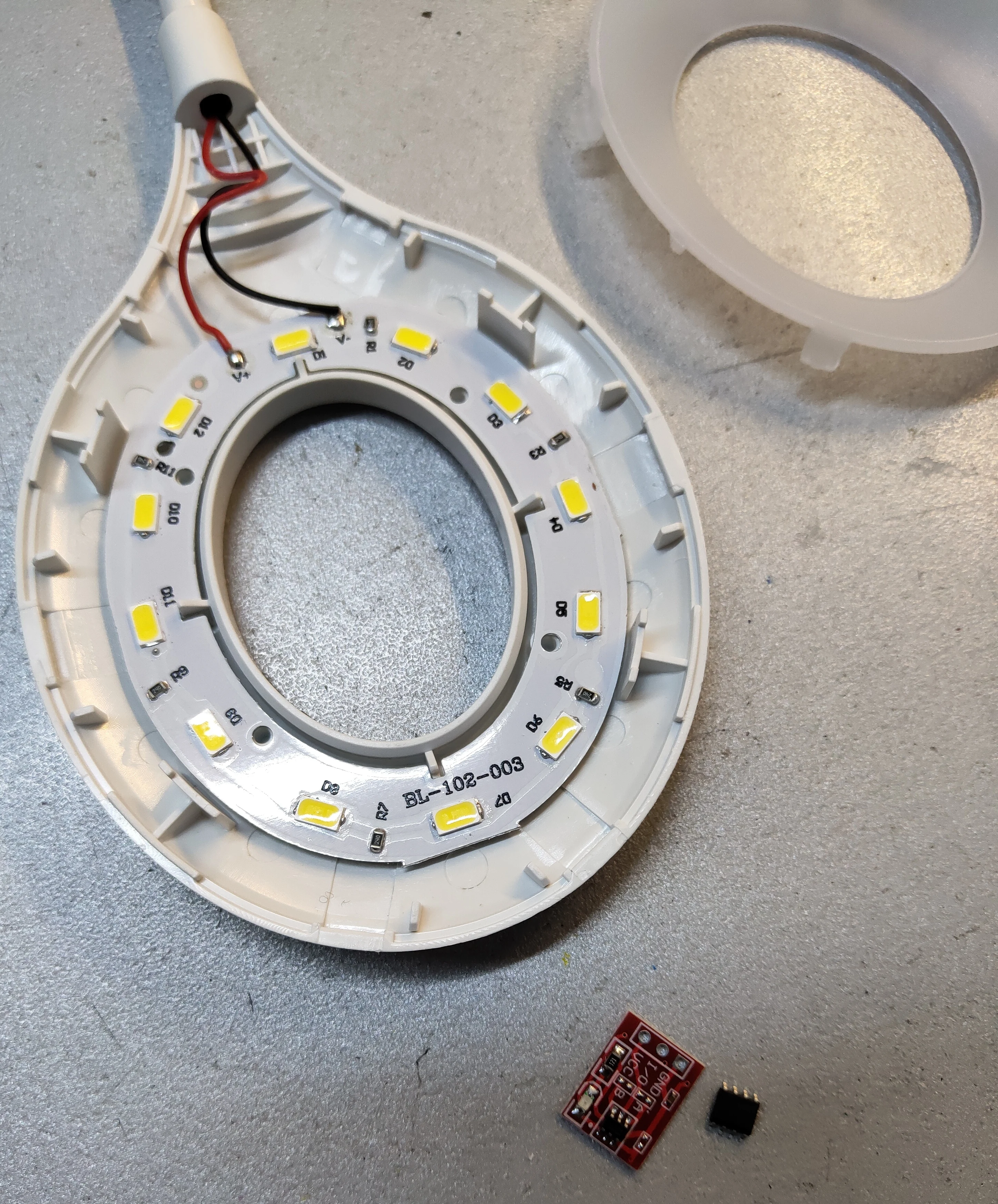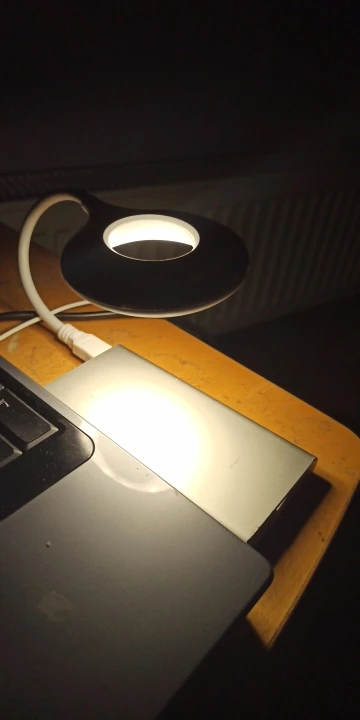 Отличная лампа. Светодиоды на алюминиевой пластине. Приколхозил сенсорную кнопку с первым попавшему под руку мосфетом, а то дергать USB кабель не прикольно. Работает через корпус, ложных срабатываний нет. Ток потребления от хорошего БП чуть больше 600мА.