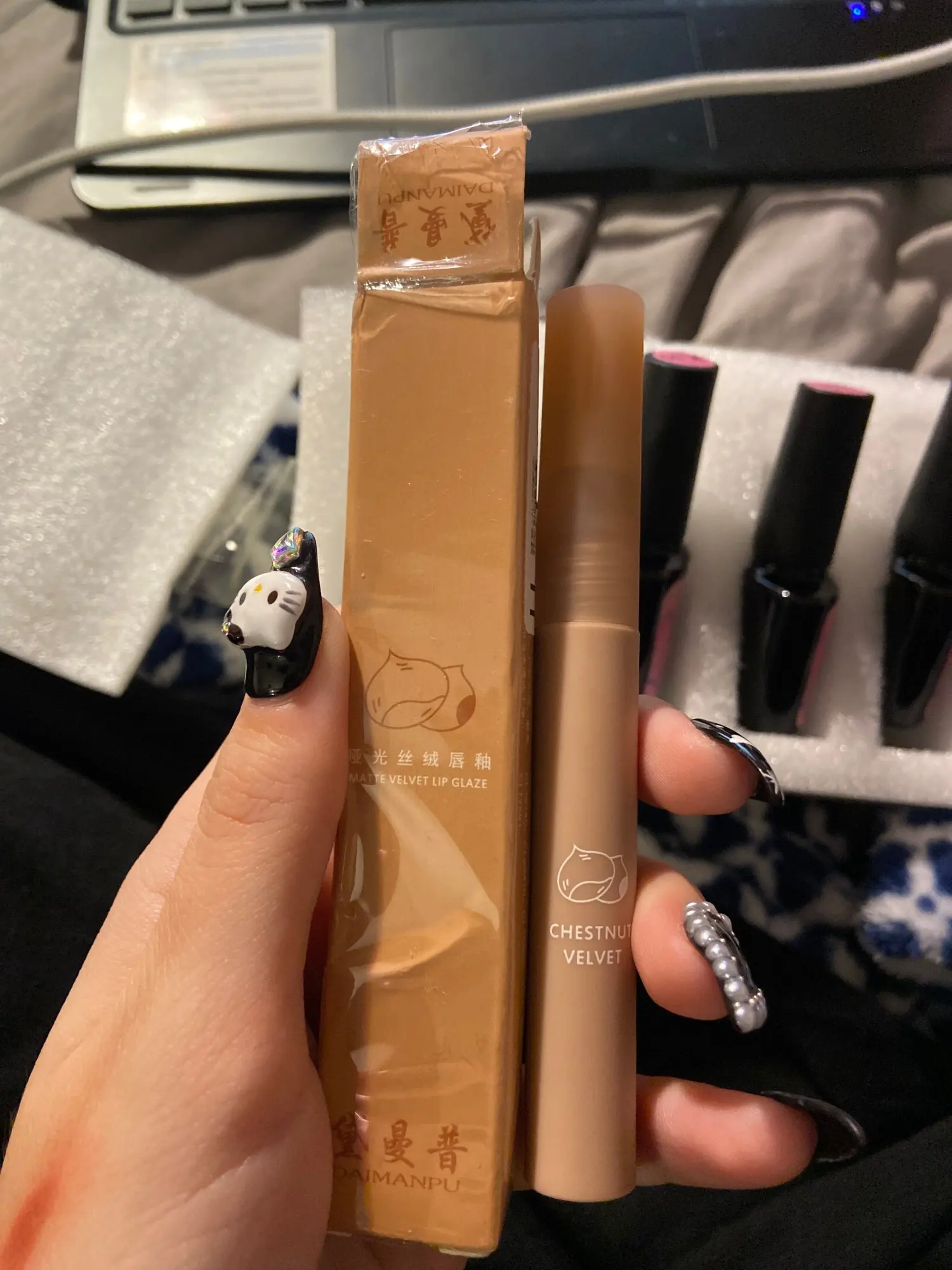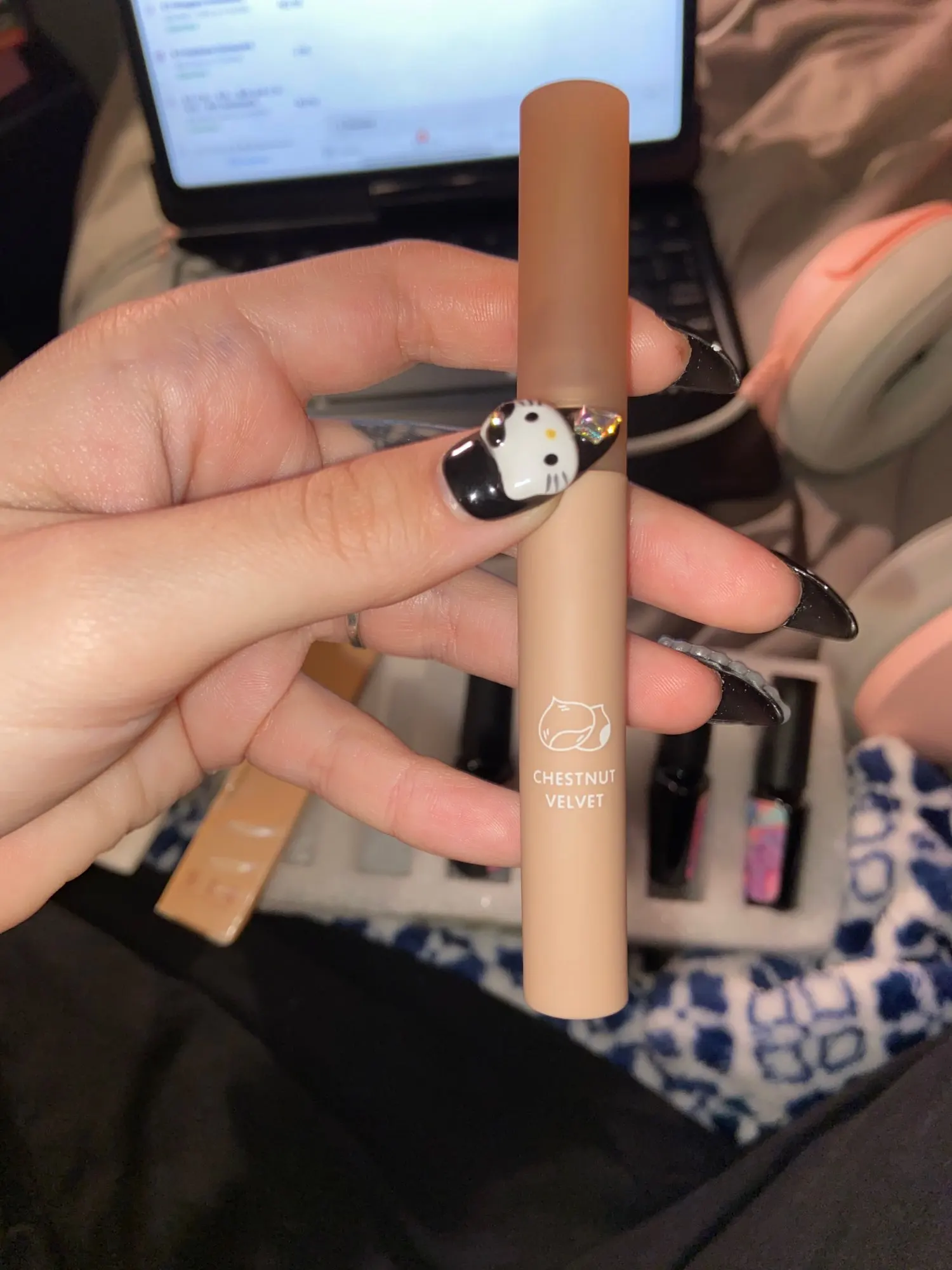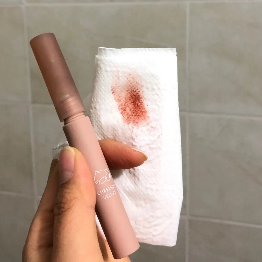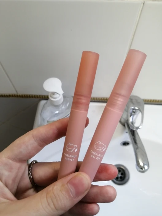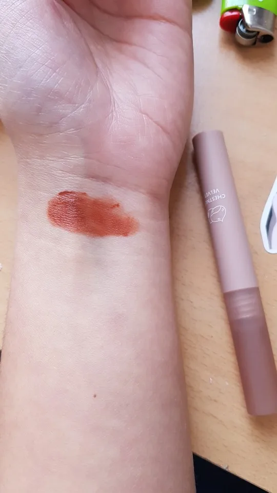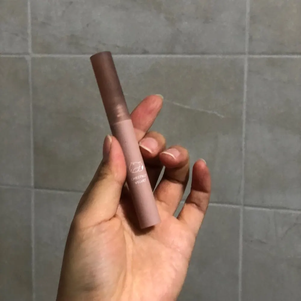 Эта губная палочка, когда я сказал вам, что такая бомба, я влюблен, честно говоря, она такая красивая! И когда вы приклеиваете его к губам, он делает ваши губы действительно мягкими! И это делает ваши губы очень милыми, а также я принёс их каштанового бархата, и он на самом деле пахнет как каштан, который такой крутой, я действительно рекомендую эту помаду.