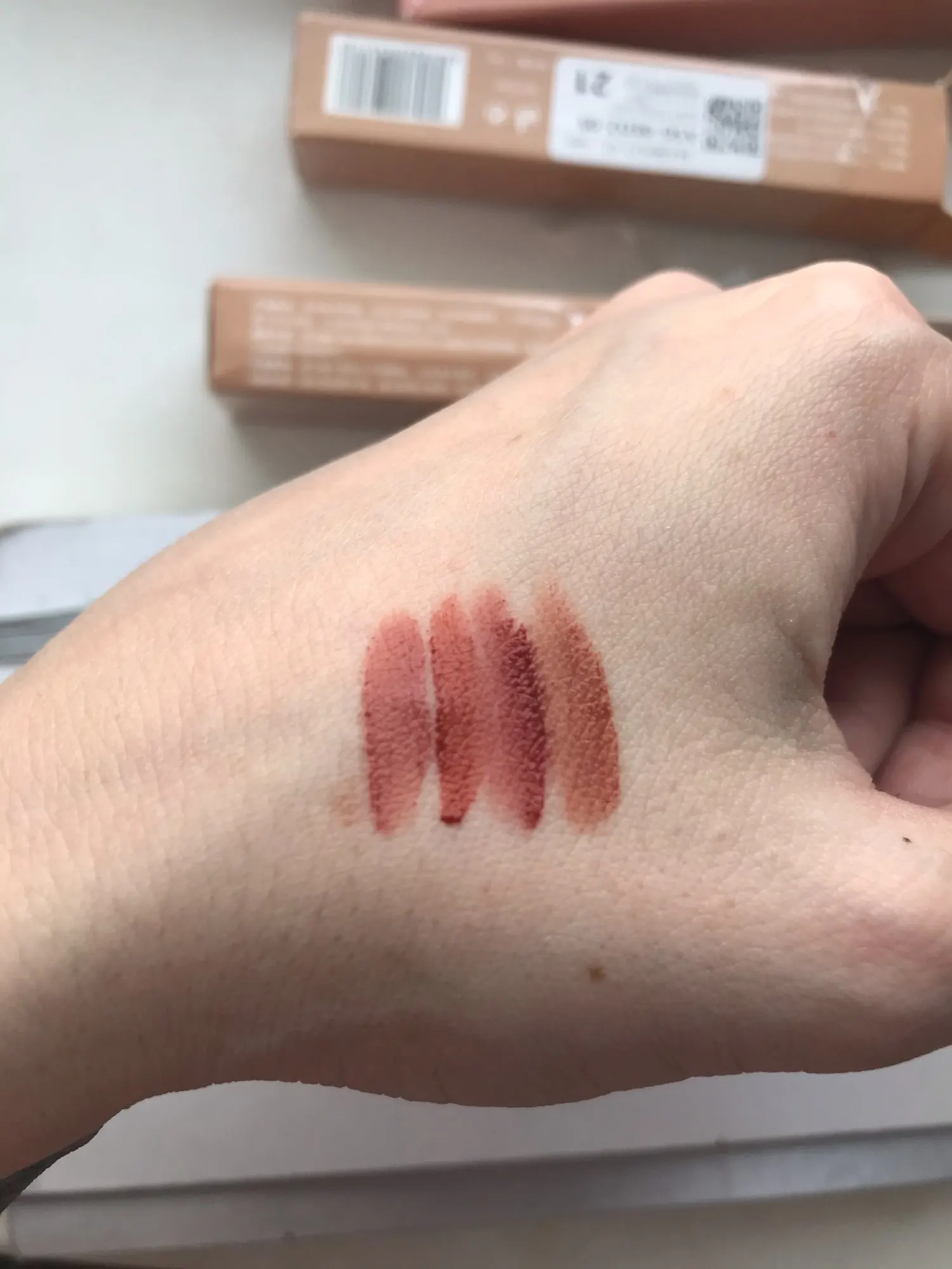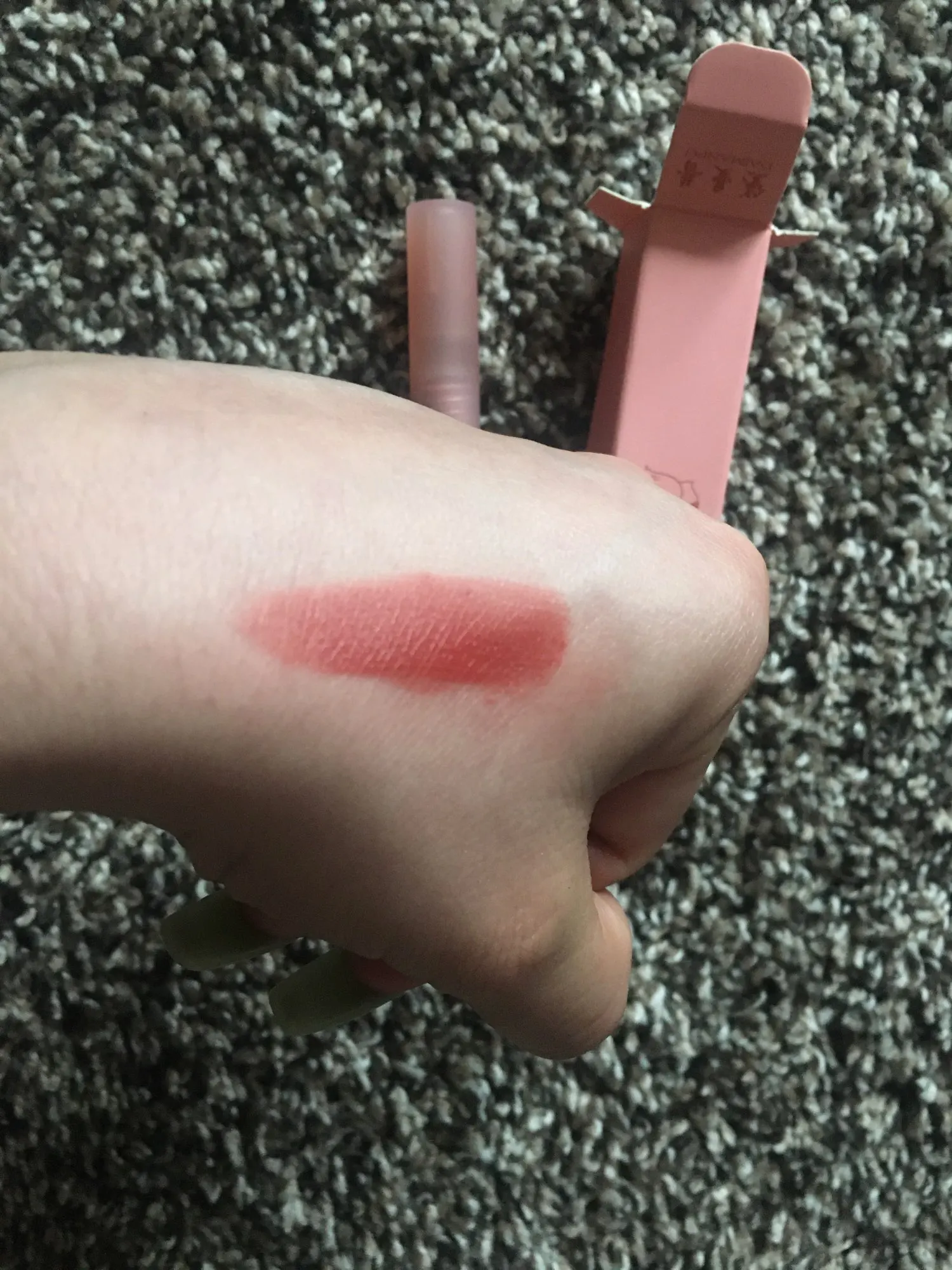 Шло около месяца.С продавцом не общалась.Заказывала 4 цвета:кажется 1,2,4 и 5,но вместо 2 пришёл 3.Так как губы у меня очень красные от природы и тонкие(явно не корейские),то таких переходов цвета не видно.Пахнут они все шоколадом и не сильно.Матовость 100%.Ложится мягко и бархатисто.Но мало продукта очень.Если пользоваться каждый день-на неделю максимум(наверное).Упаковано без пупырок.Просто в пакете.Так что если в подарок берёте,то не знаю.Побиты коробочки.Стойкость давольно не плохая.Немного сушит губы через час.растушёвывается прекрасно и в последствии постепенно стирается.Я вполне довольна.