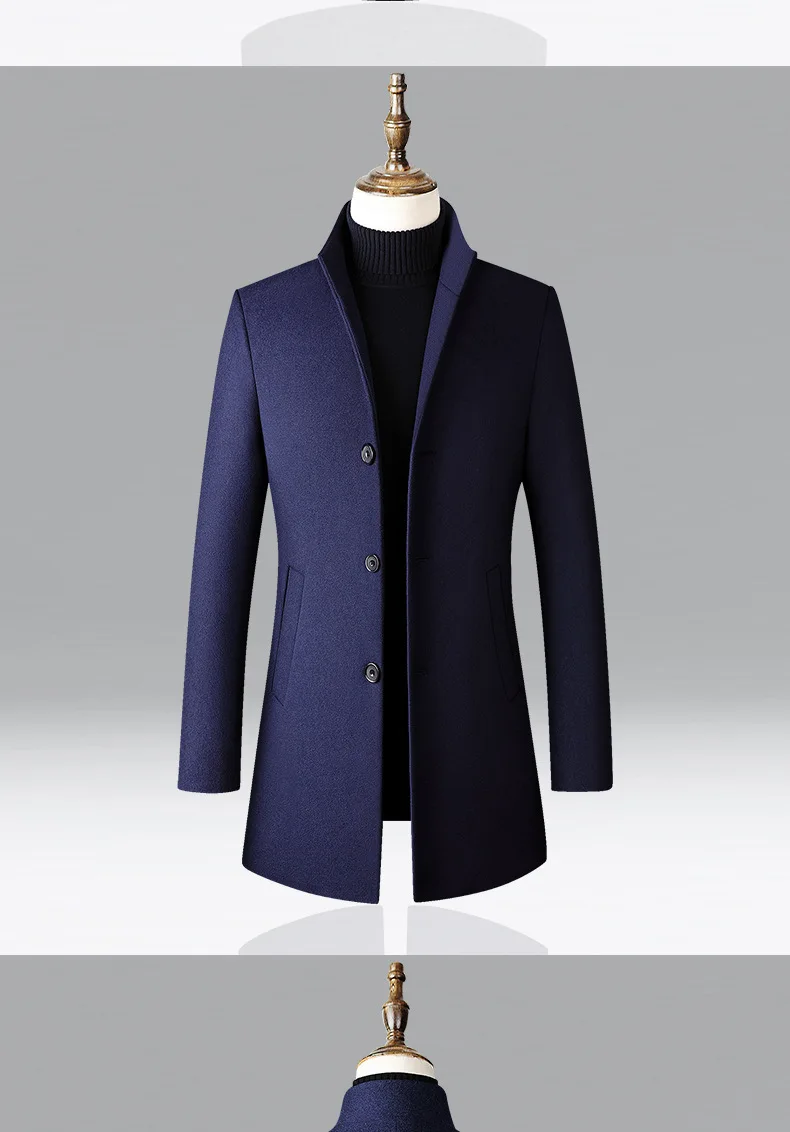 Зимнее шерстяное пальто для мужчин, толстое пальто с воротником-сто...