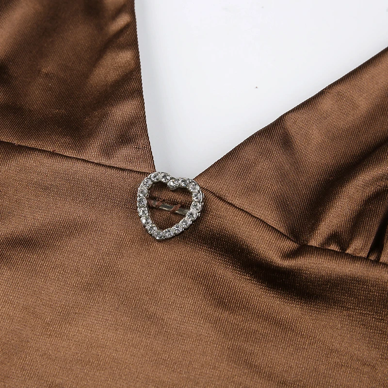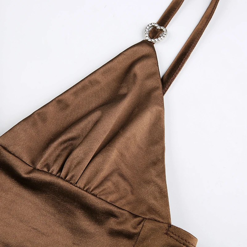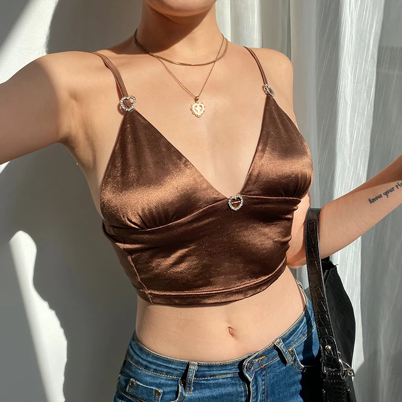 Rockmore коричневый Сексуальный Атласный короткий топ тройники Спаг...