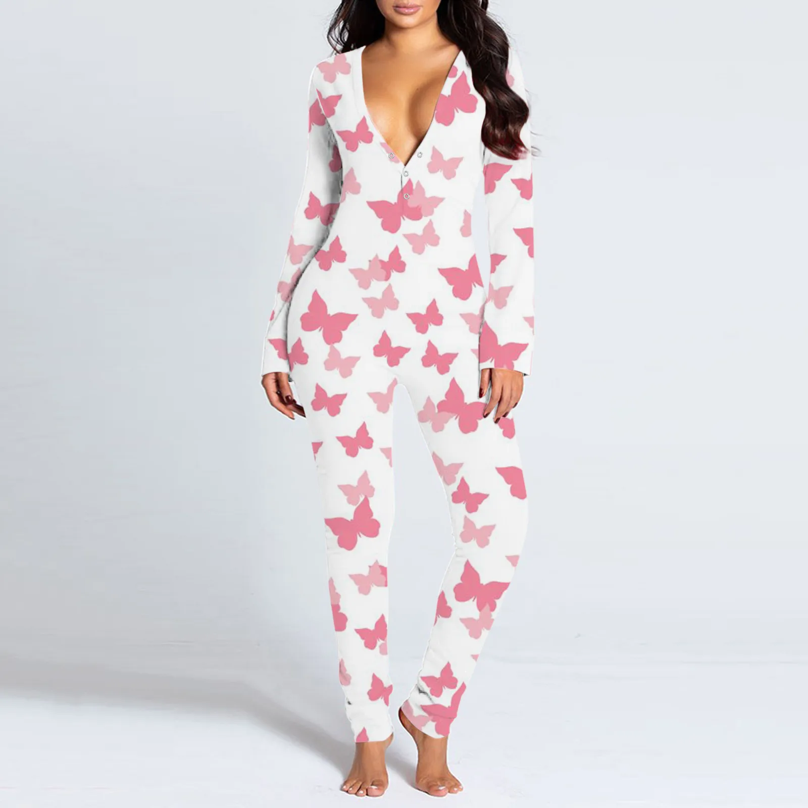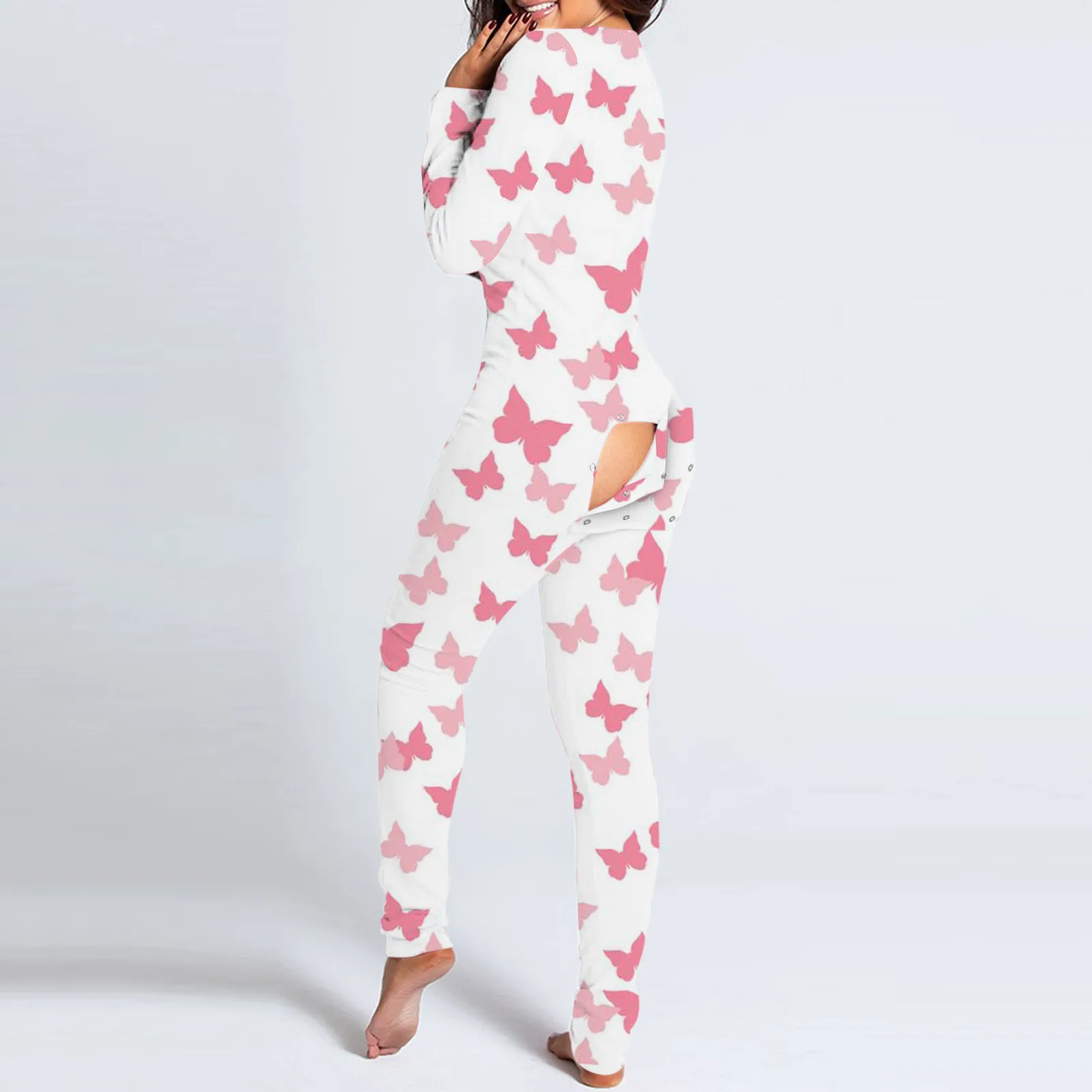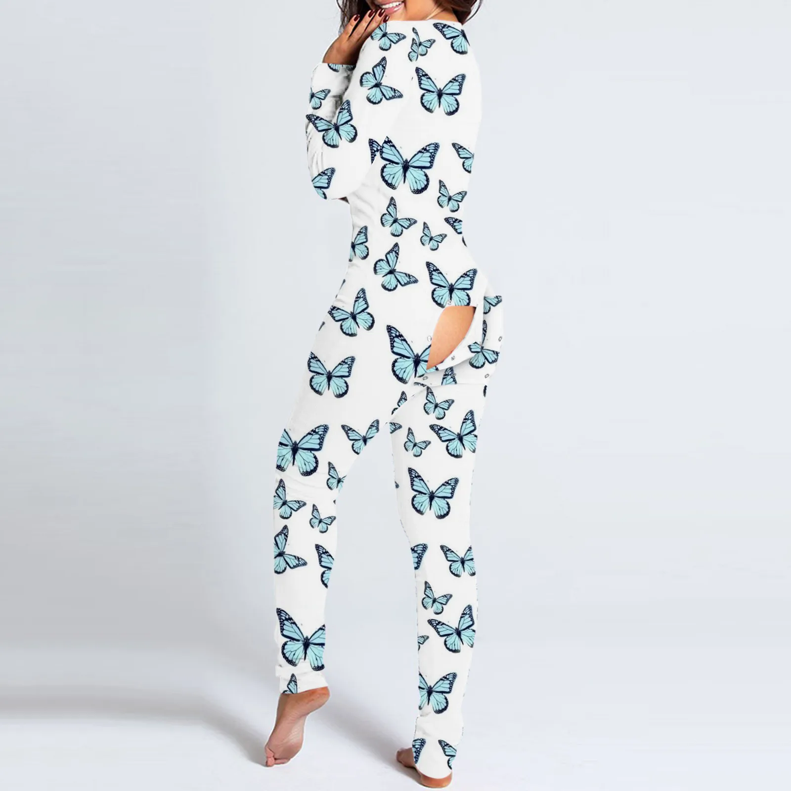 Женская пижама на пуговицах, с принтом бабочек, комбинезон для взрослых
