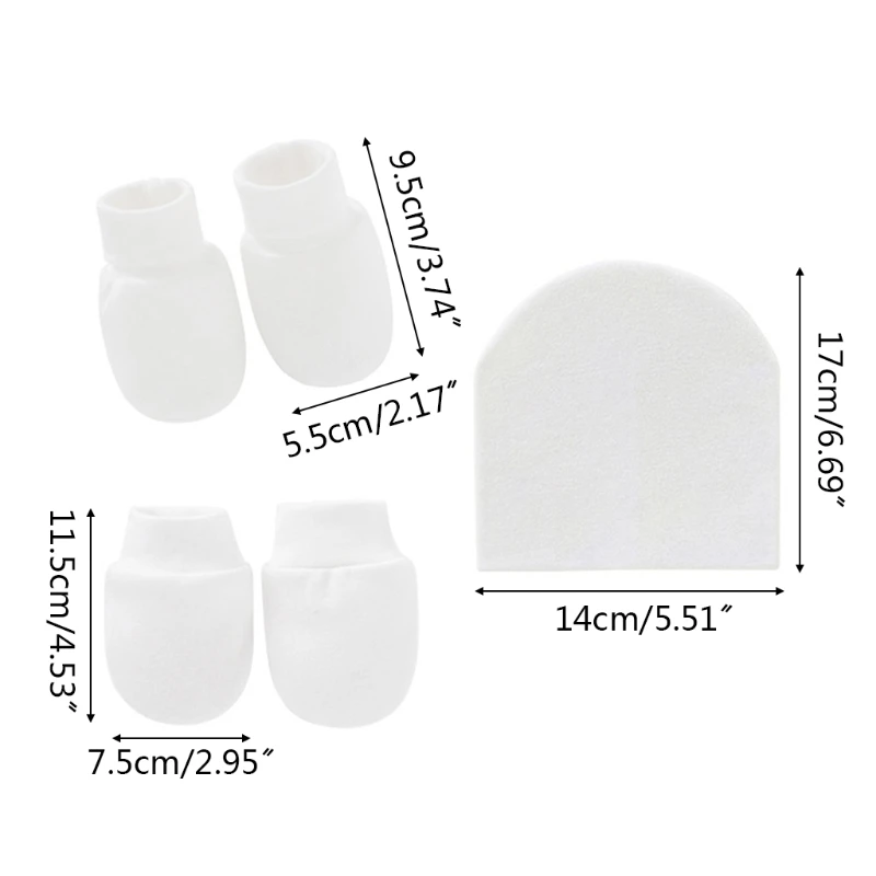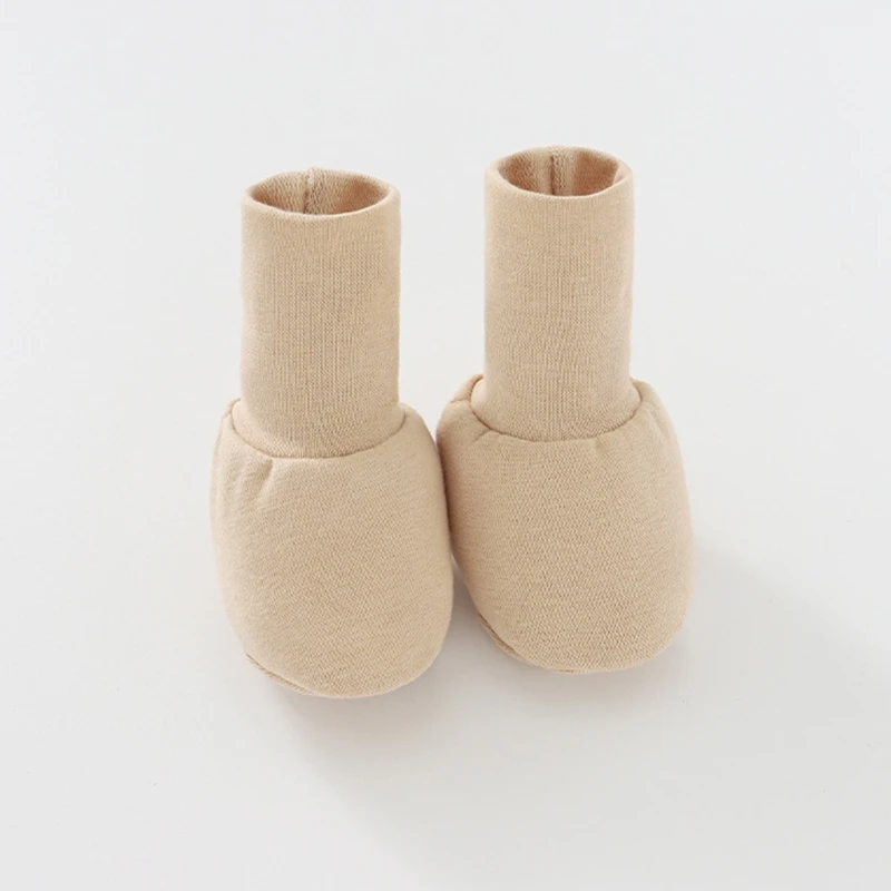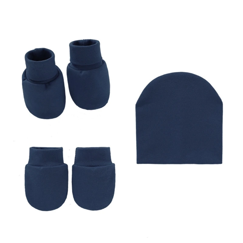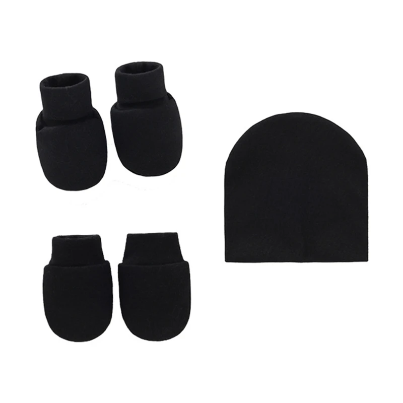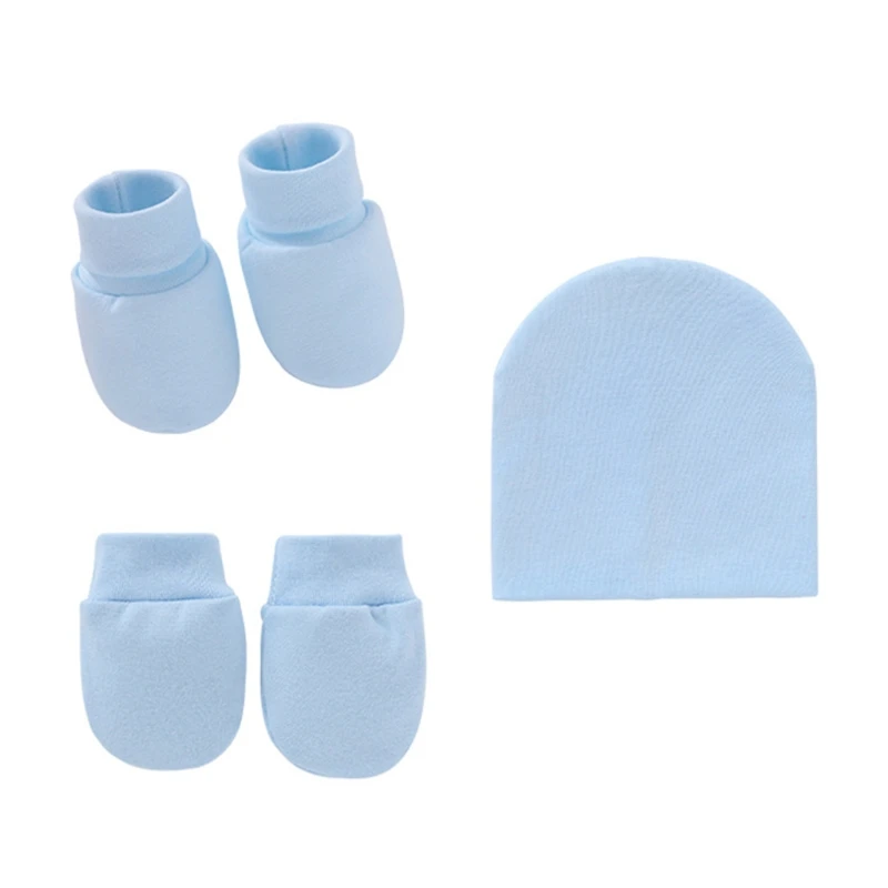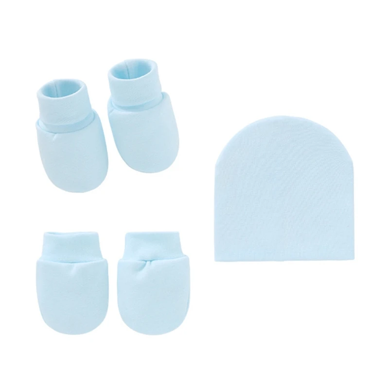 Детские вязаные хлопковые перчатки с защитой от царапин + шапочка + чехол для ног для новорожденных, варежки для защиты лица от царапин, носки, теплый комплект с шапочкой