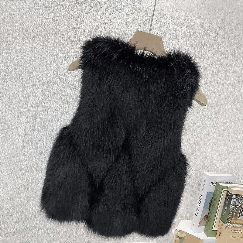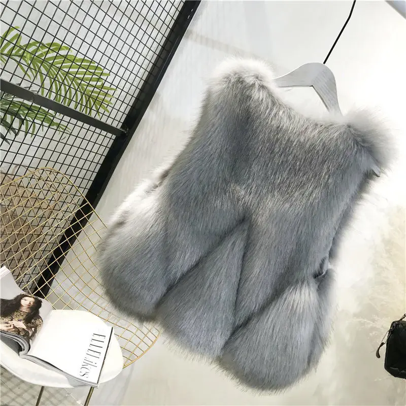 Жилет женский из искусственного лисьего меха, короткий, черного и серого цвета, без рукавов, Осень-зима 2021