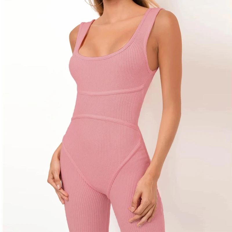 Angjulie без рукавов эластичный облегающий женский комбинезон, комбинезон, женский комбинезон, твердые скинни с завышенной талией, для бега, фитнеса Комбинезоны для Леди clubwearoutfit