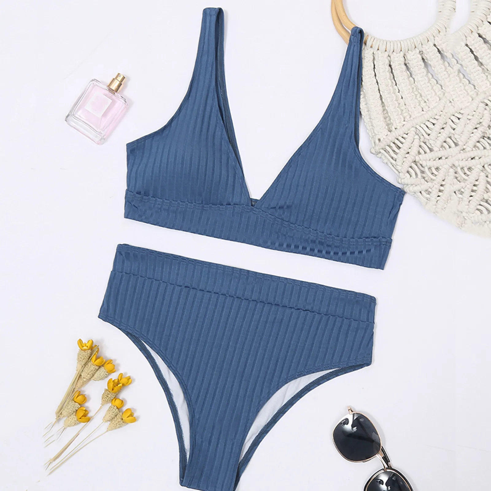 Женский однотонный купальник-бикини с эффектом пуш-ап и высокой талией, комплект бикини с лямкой через шею, комплект из двух предметов, купальник, новинка 2021