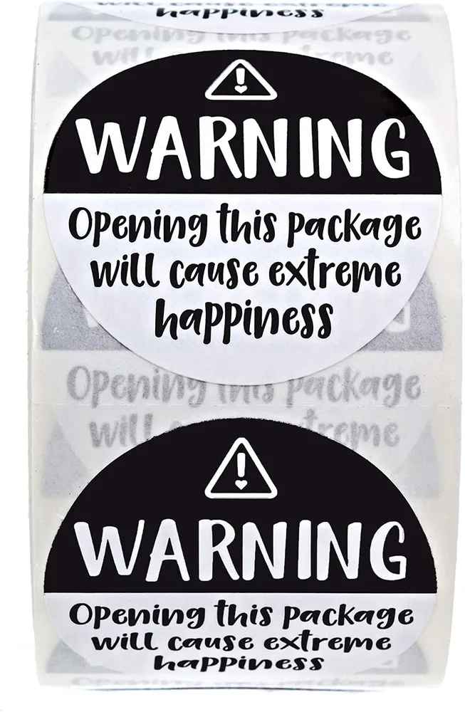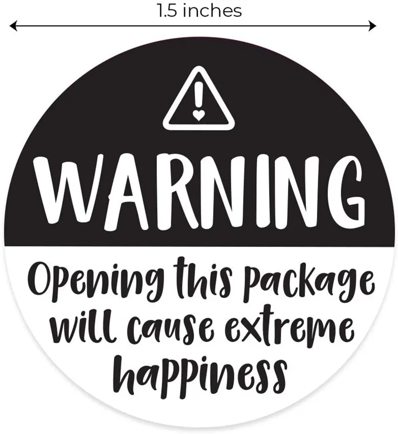 Наклейки для малого бизнеса, 1,5 дюймов, черно-белые Предупреждение: экстремальное счастье, наклейки для бизнеса, 500 шт.