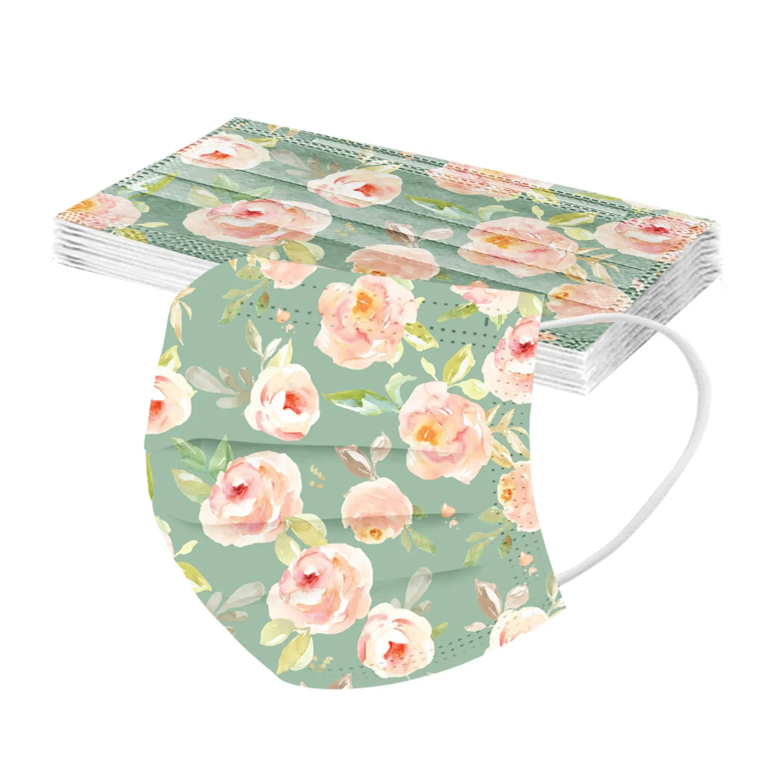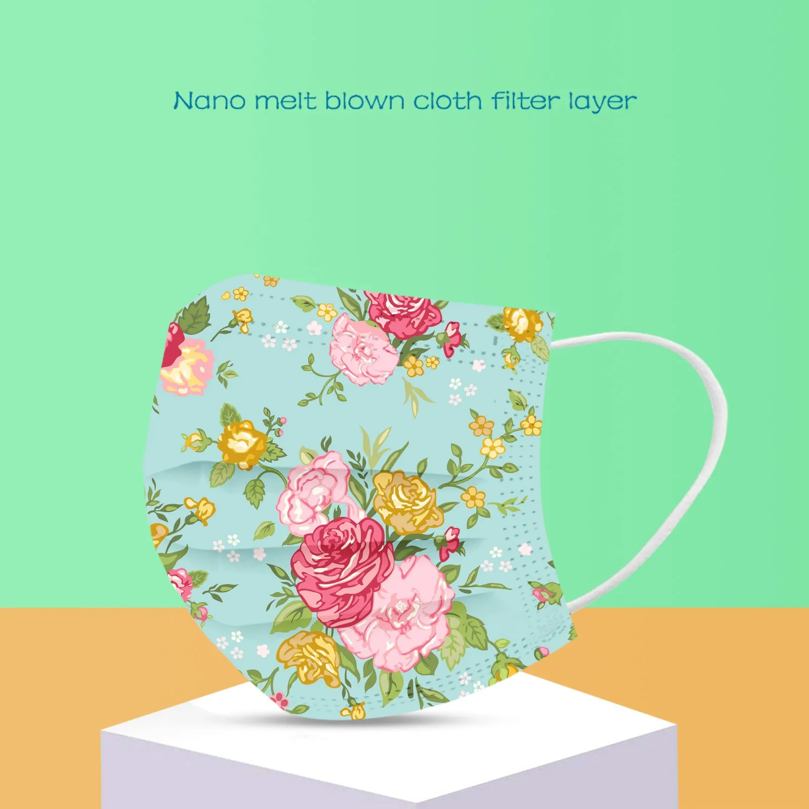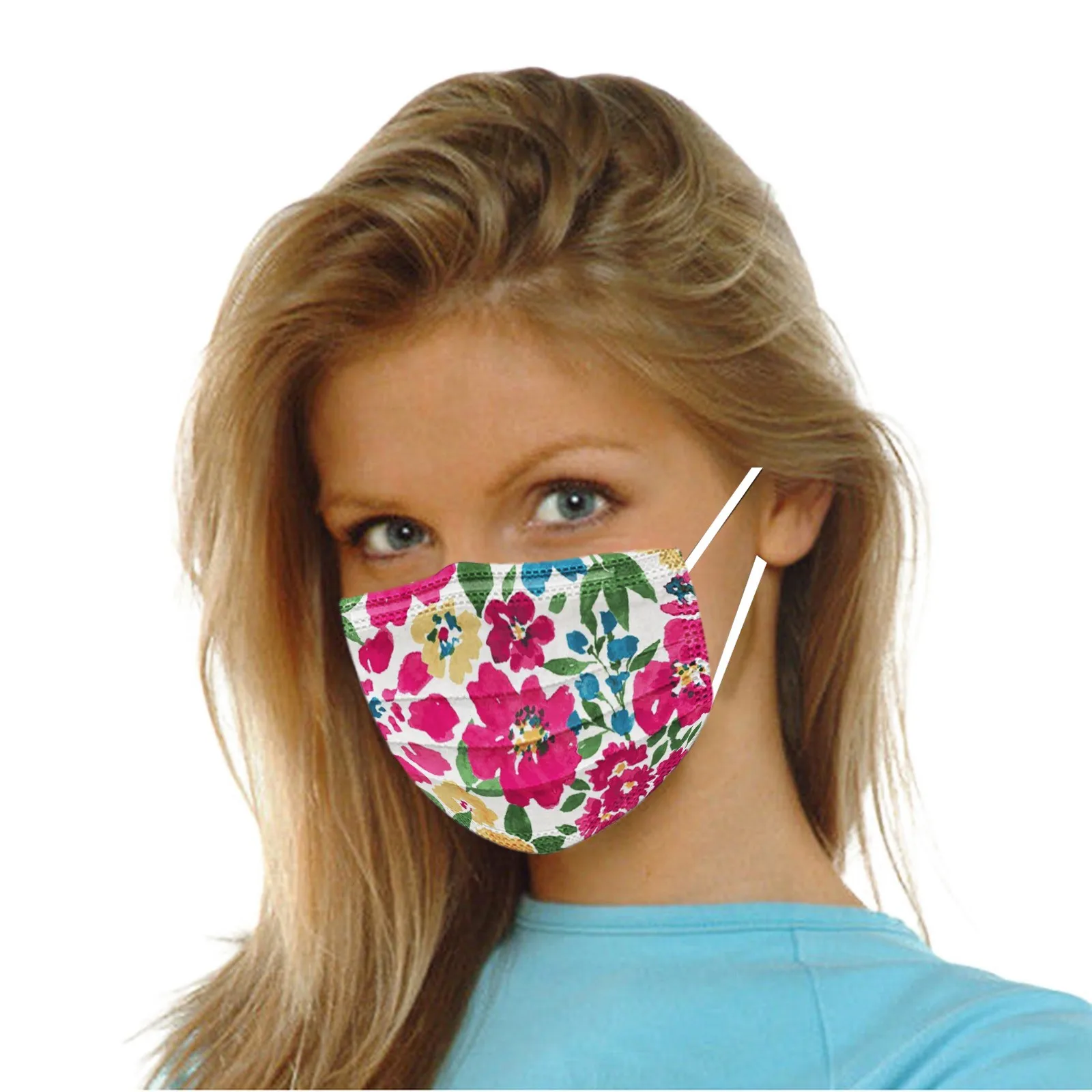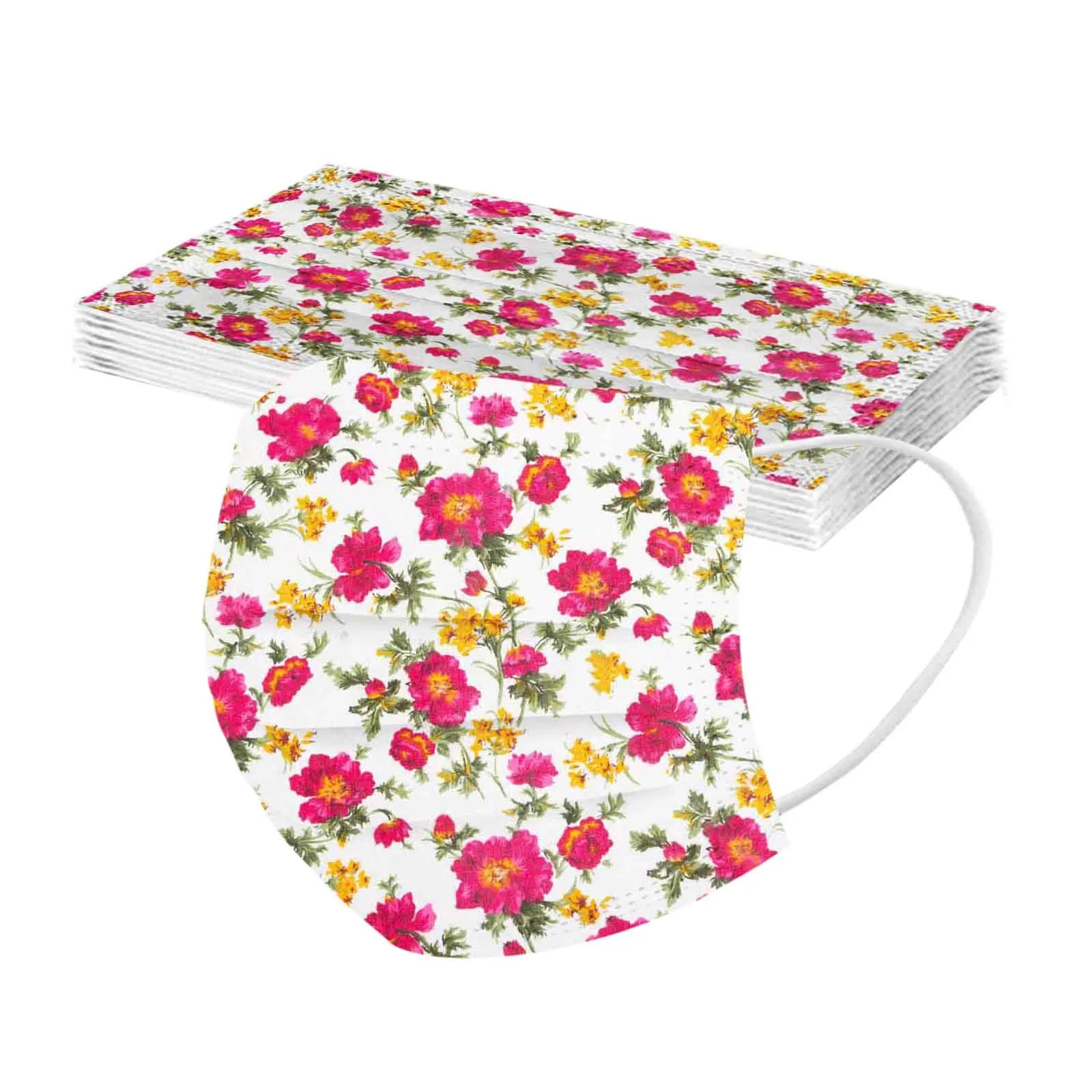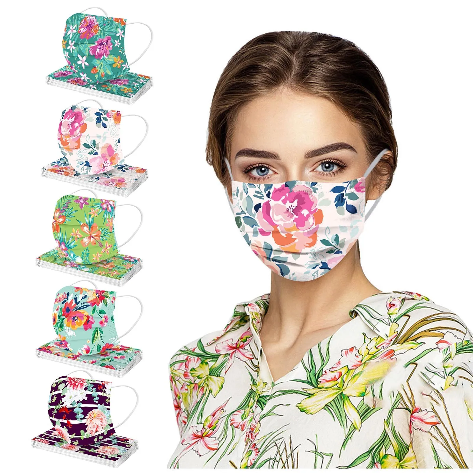 10 шт. одноразовые маски для взрослых с цветочным принтом 3 слоя сережки маска для лица