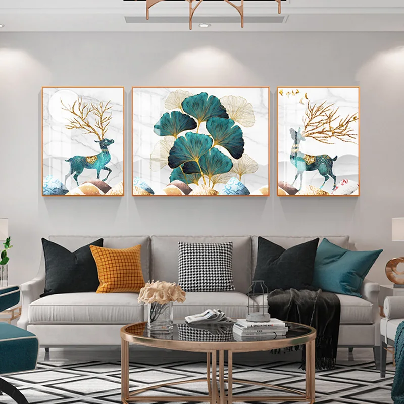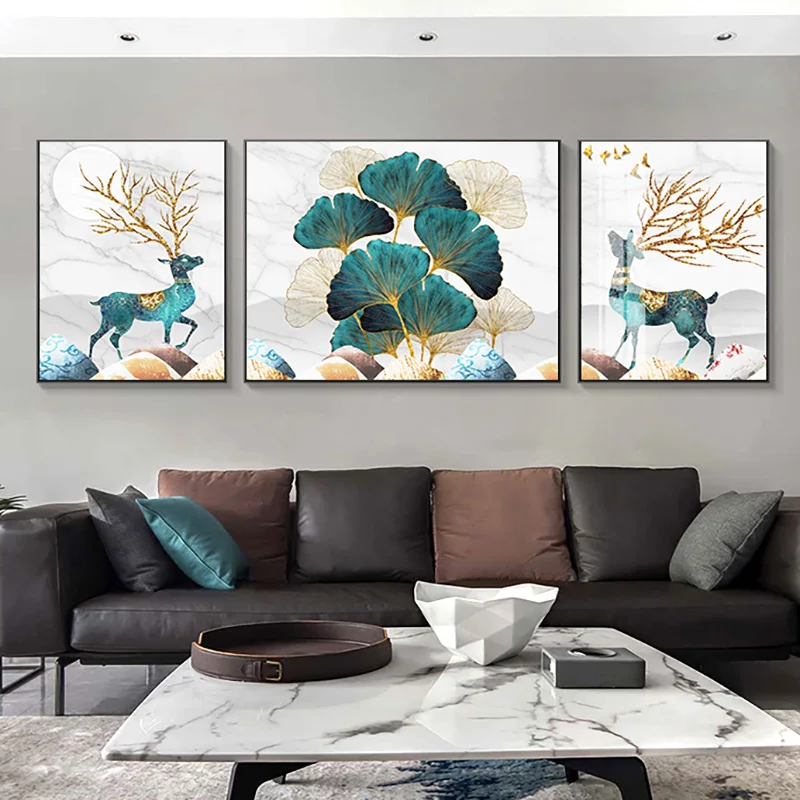 Картина на холсте с изображением золотого оленя, скандинавский принт