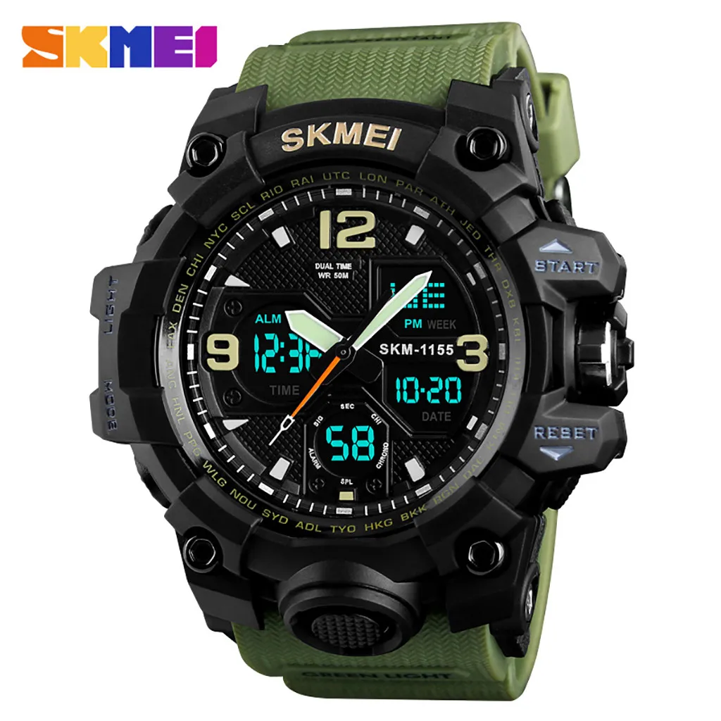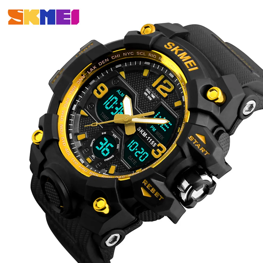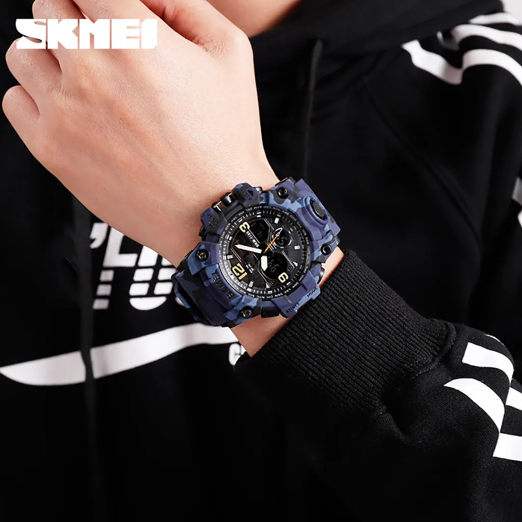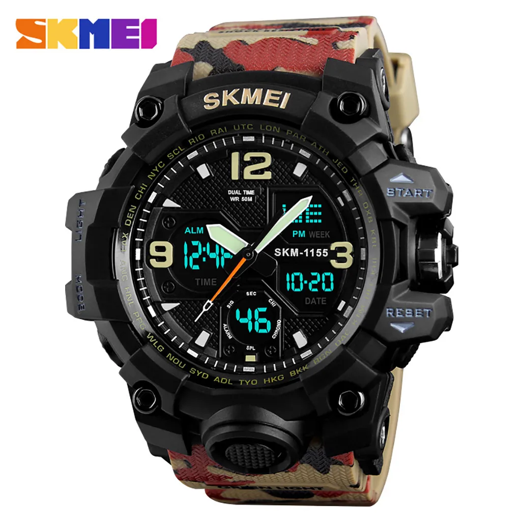 SKMEI мужские спортивные часы с двойным дисплеем Аналоговый Цифровой светодиодный Электронные наручные часы