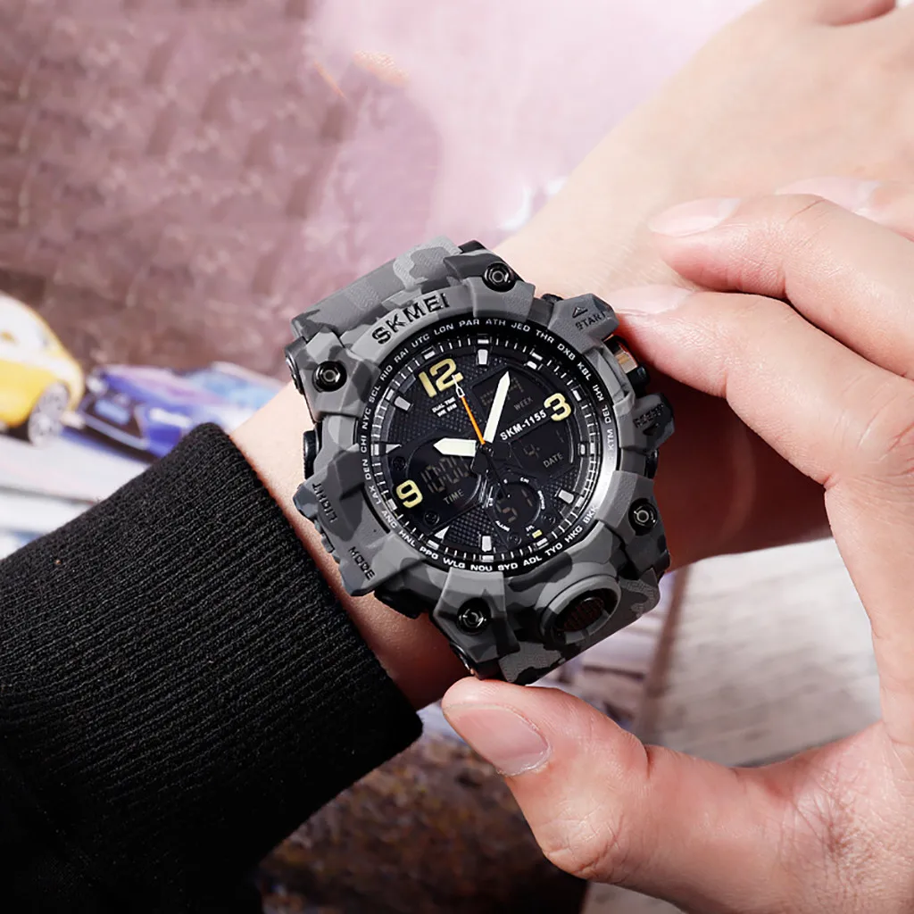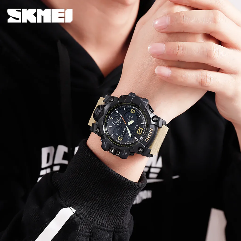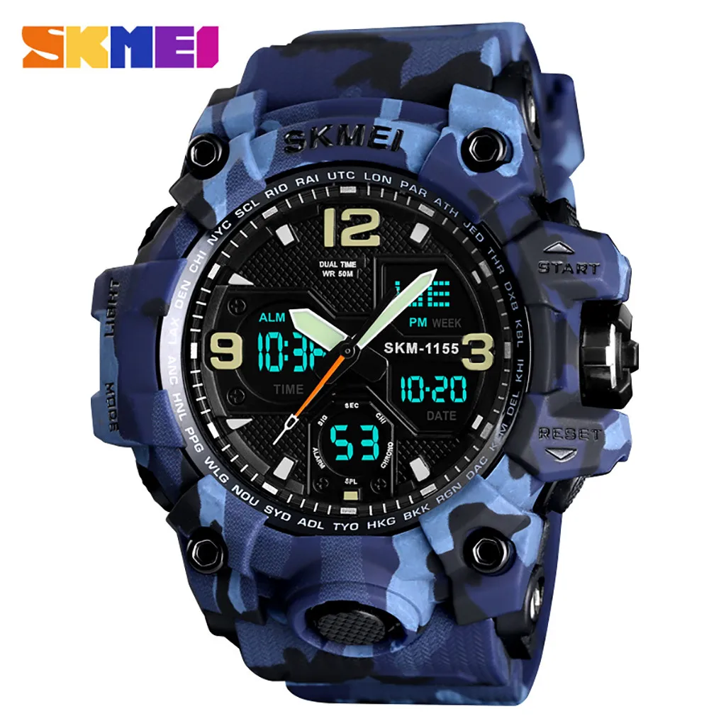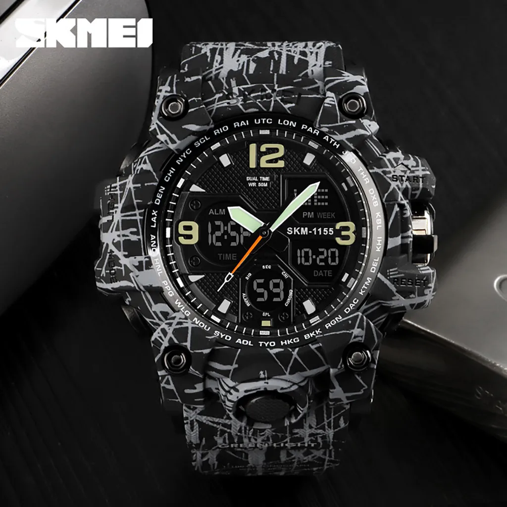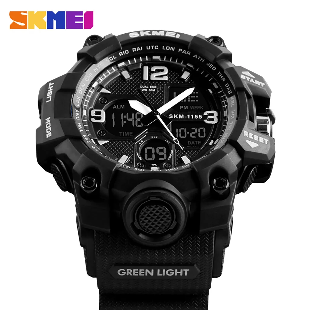 SKMEI мужские спортивные часы с двойным дисплеем Аналоговый Цифровой светодиодный Электронные наручные часы