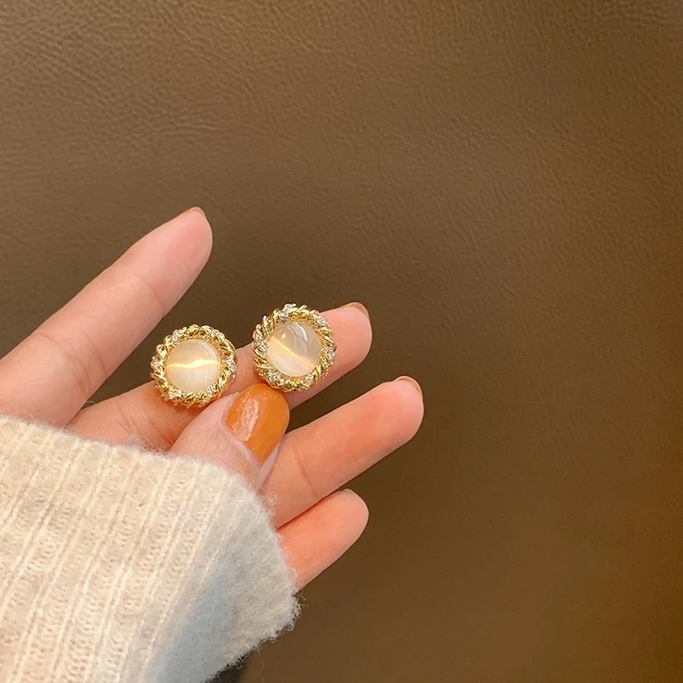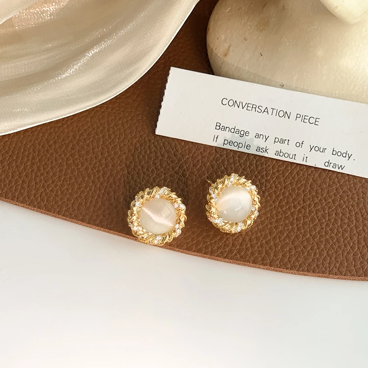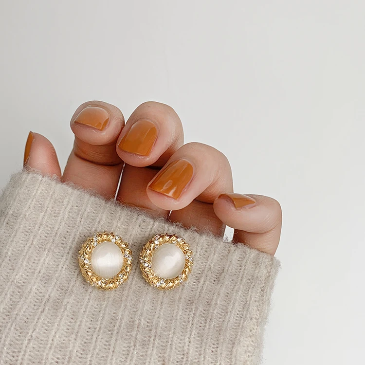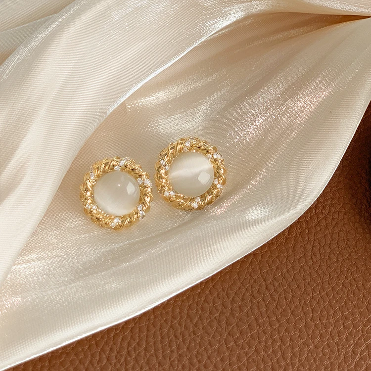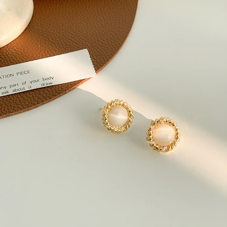 Изысканные роскошные круглые золотые серьги с опалом для женщин, женская Свадебная вечеринка, аксессуары для подарка