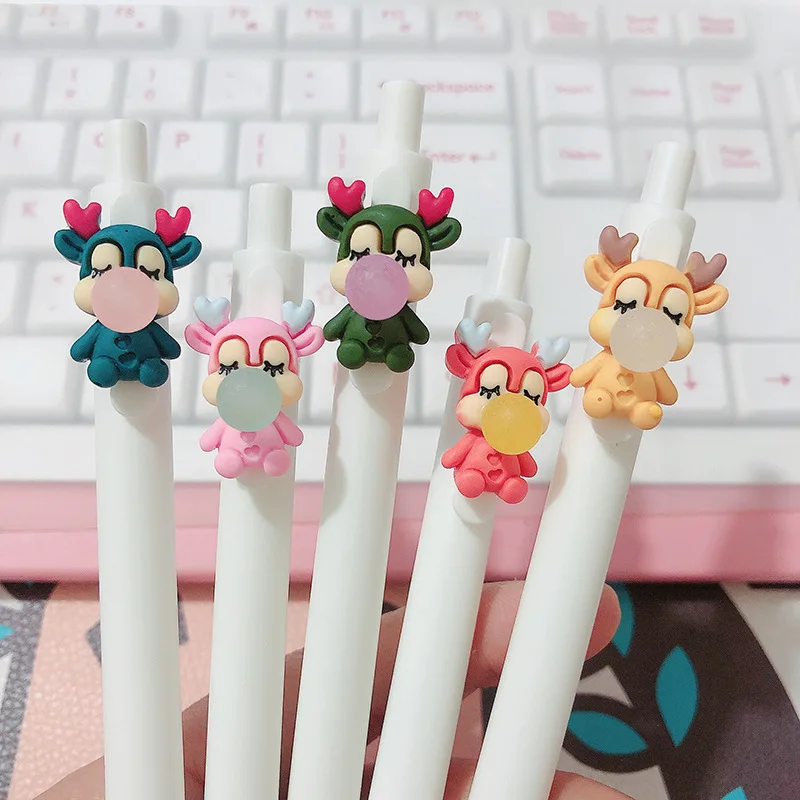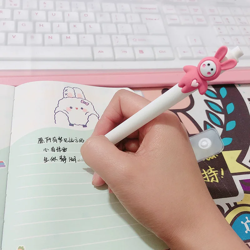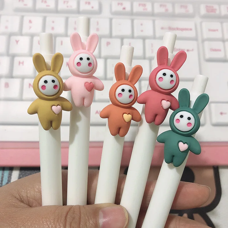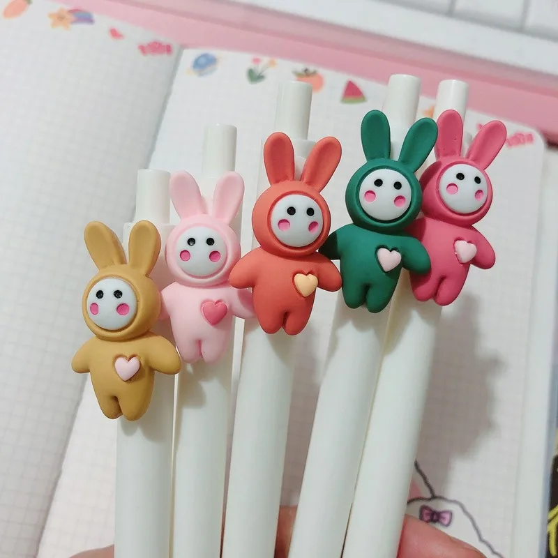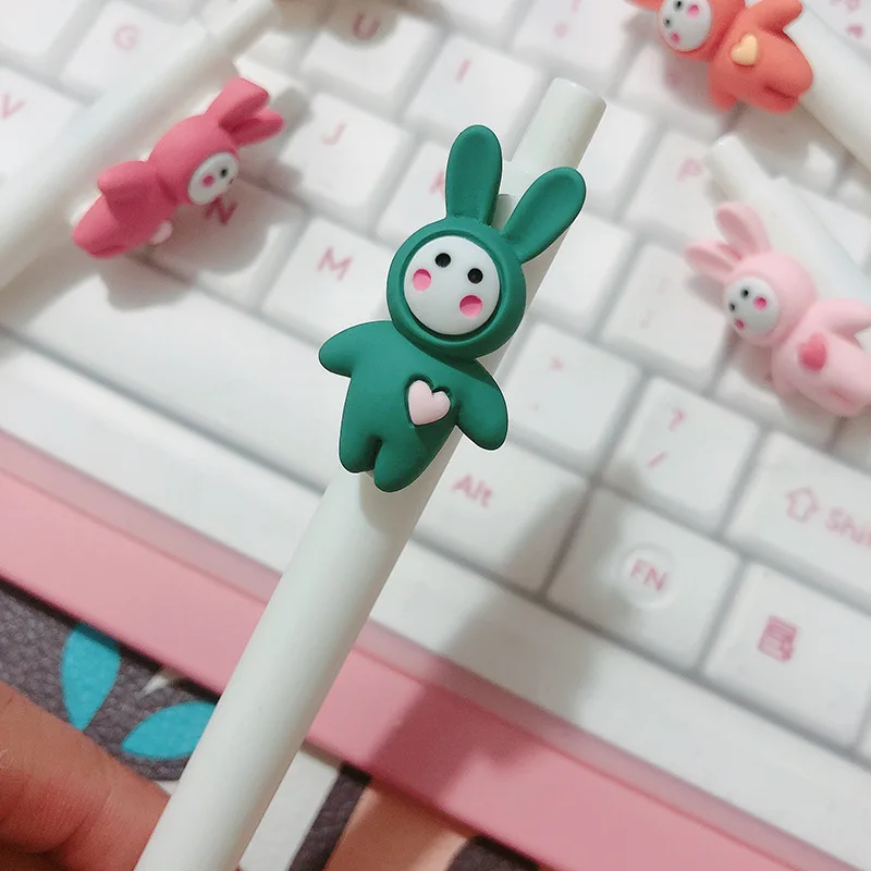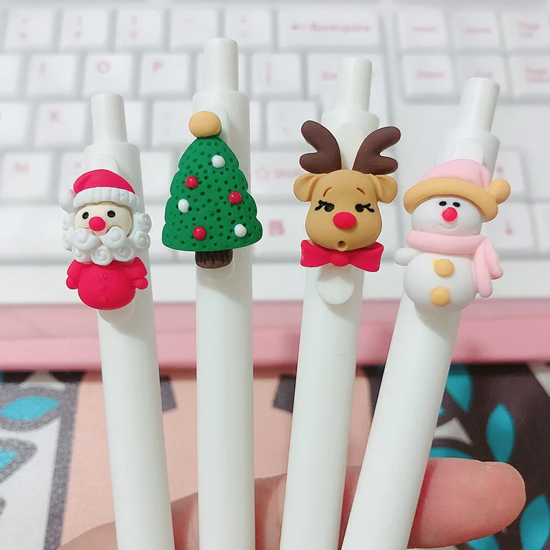 2 шт. симпатичная мультяшная ручка для прессования, любовь, сердце, кролик, Санта-Клаус, черные чернила, 0,5 мм, гелевая фотоэлемент