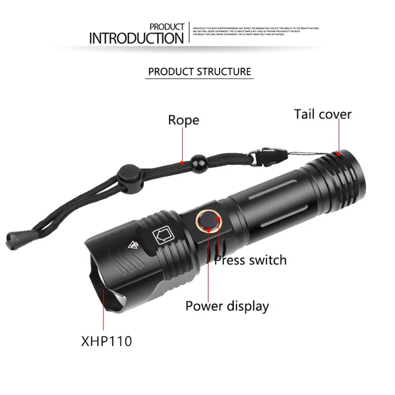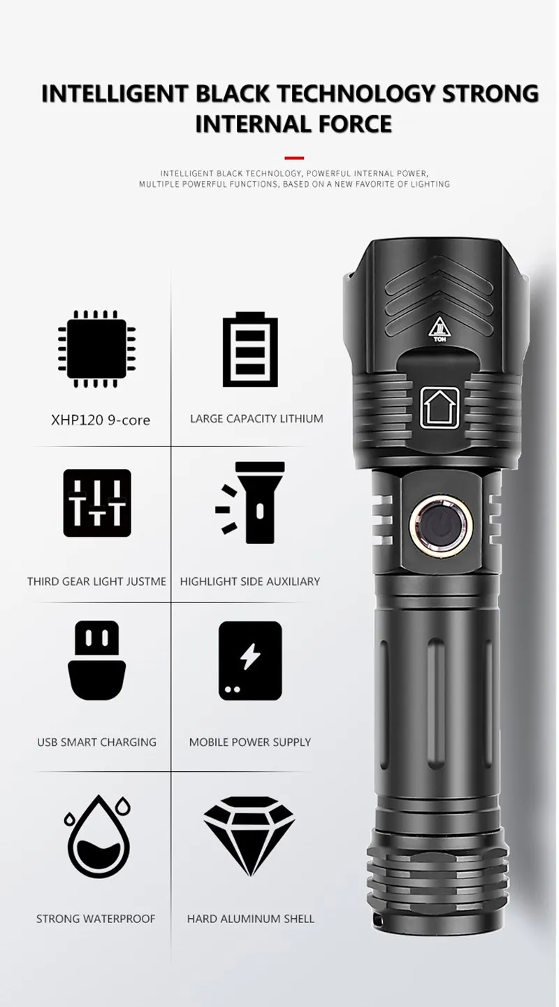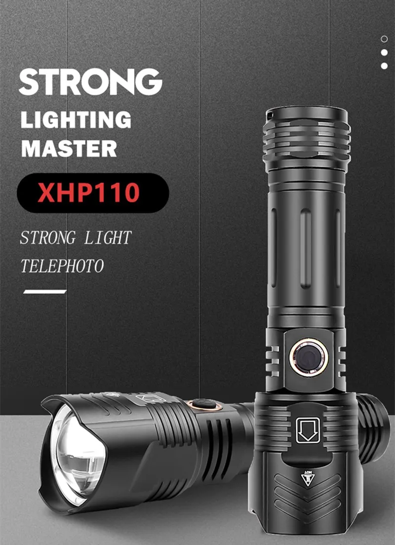 Фонарик XHP110.2, 9 ядер, светодиодный, водонепроницаемый, с аккумулятором 5000 мА ч, 26650