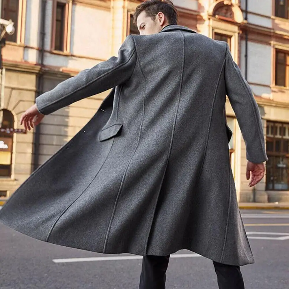 Мужское шерстяное пальто, зимнее пальто, мужские шерстяные пальто с длинным рукавом и воротником-стойкой, шерстяное пальто средней длины, Мужское пальто