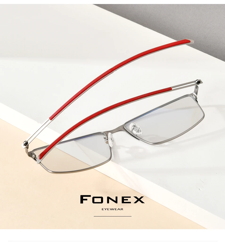 FONEX Фотохромные серые очки, Мужские квадратные очки из титанового сплава с защитой от синего света, 2021, корейские очки без винтов, оправа FAB1010