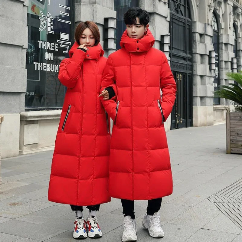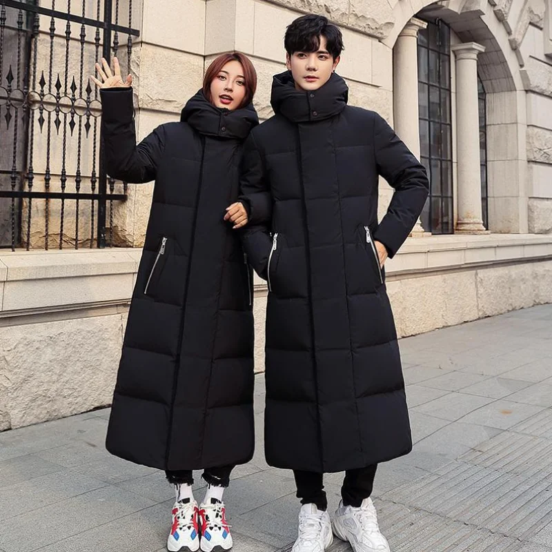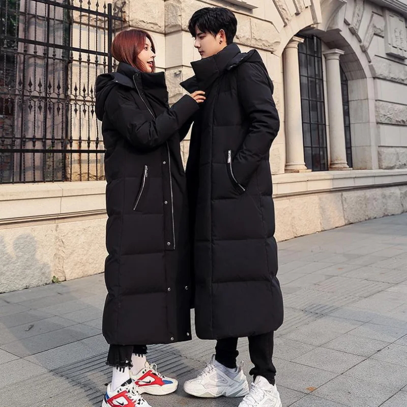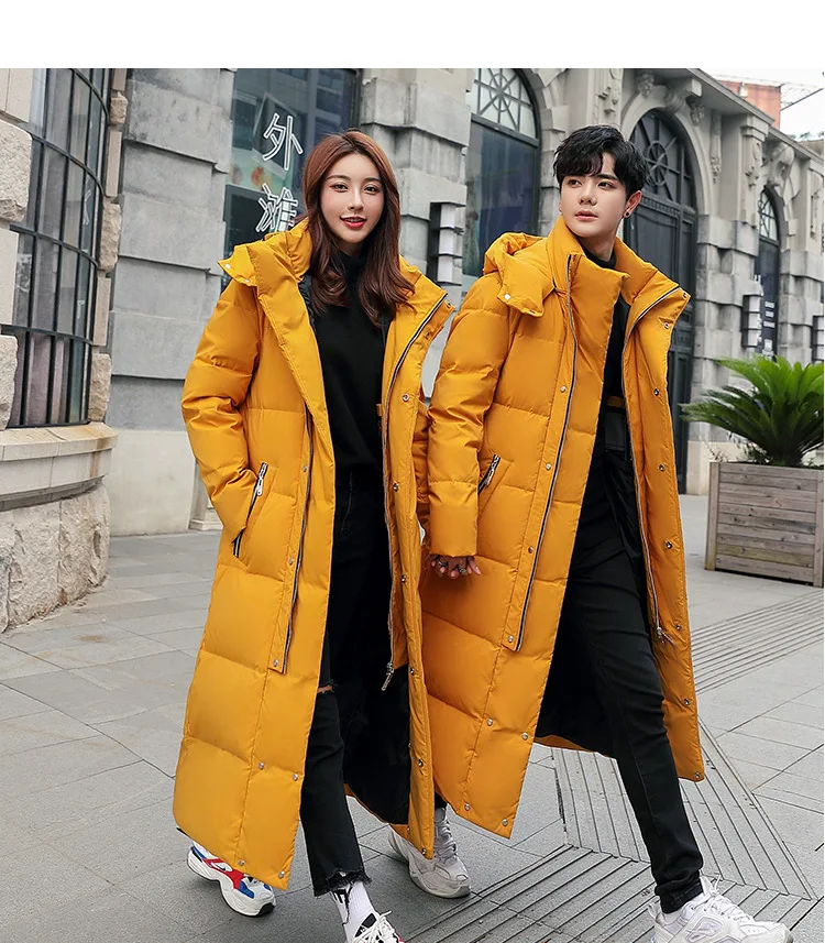 Куртка на белом утином пуху для женщин и мужчин, Зимняя Толстая теплая верхняя одежда с капюшоном, Женская Повседневная однотонная длинная верхняя одежда