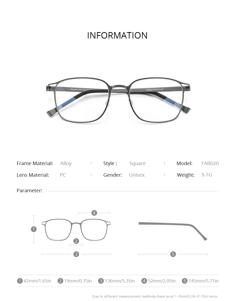 FONEX Мужские квадратные очки для близорукости, без винтов, 2020