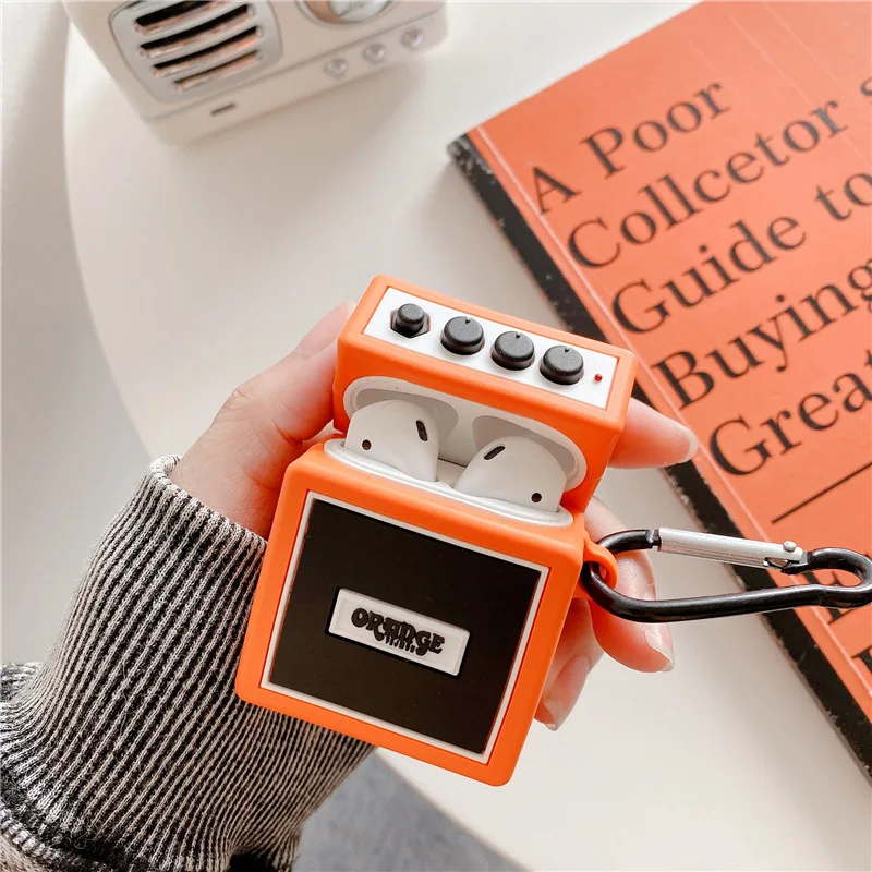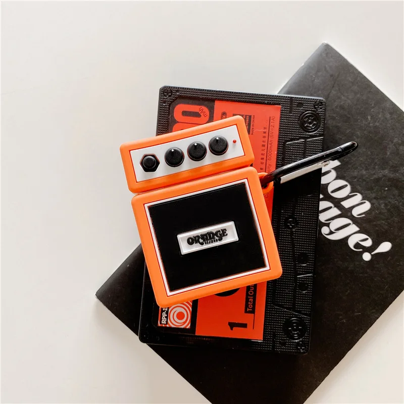 Оранжевый брендовый 3D чехол в стиле ретро со звуком и музыкальной колонкой для AirPods 1 2 Pro Box, силиконовый защитный чехол для беспроводных Bluetooth-наушников