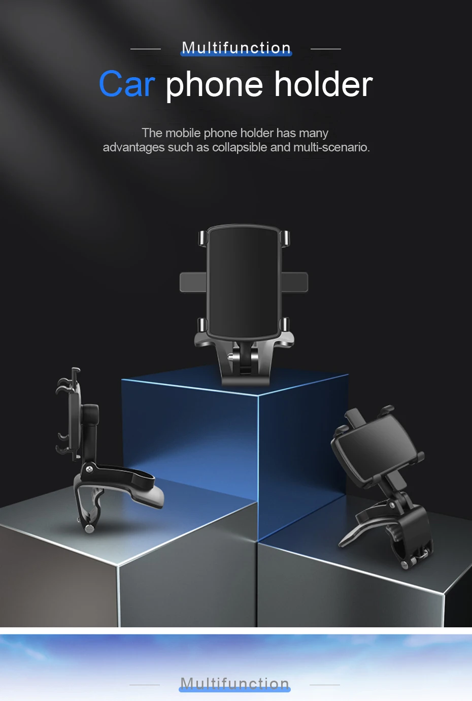 Характеристики:Материал: АБС-пластикПодходит: телефон 3-7 дюймовМесто установки: зеркало заднего вида автомобиля, приборная панель, солнцезащитный козырекЦвета: черный