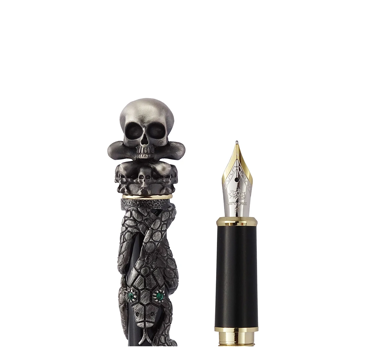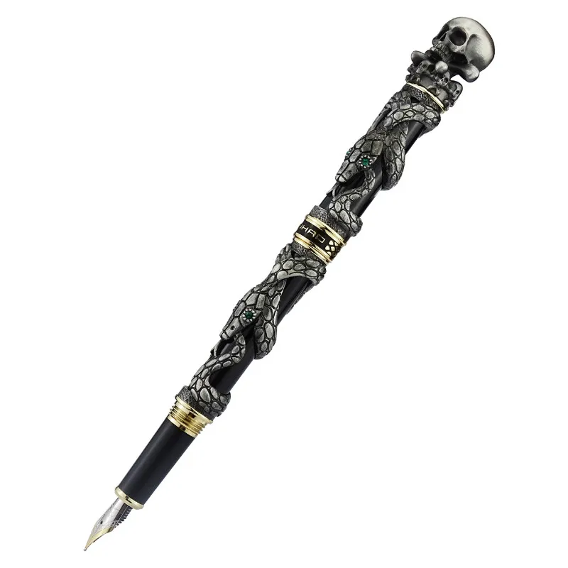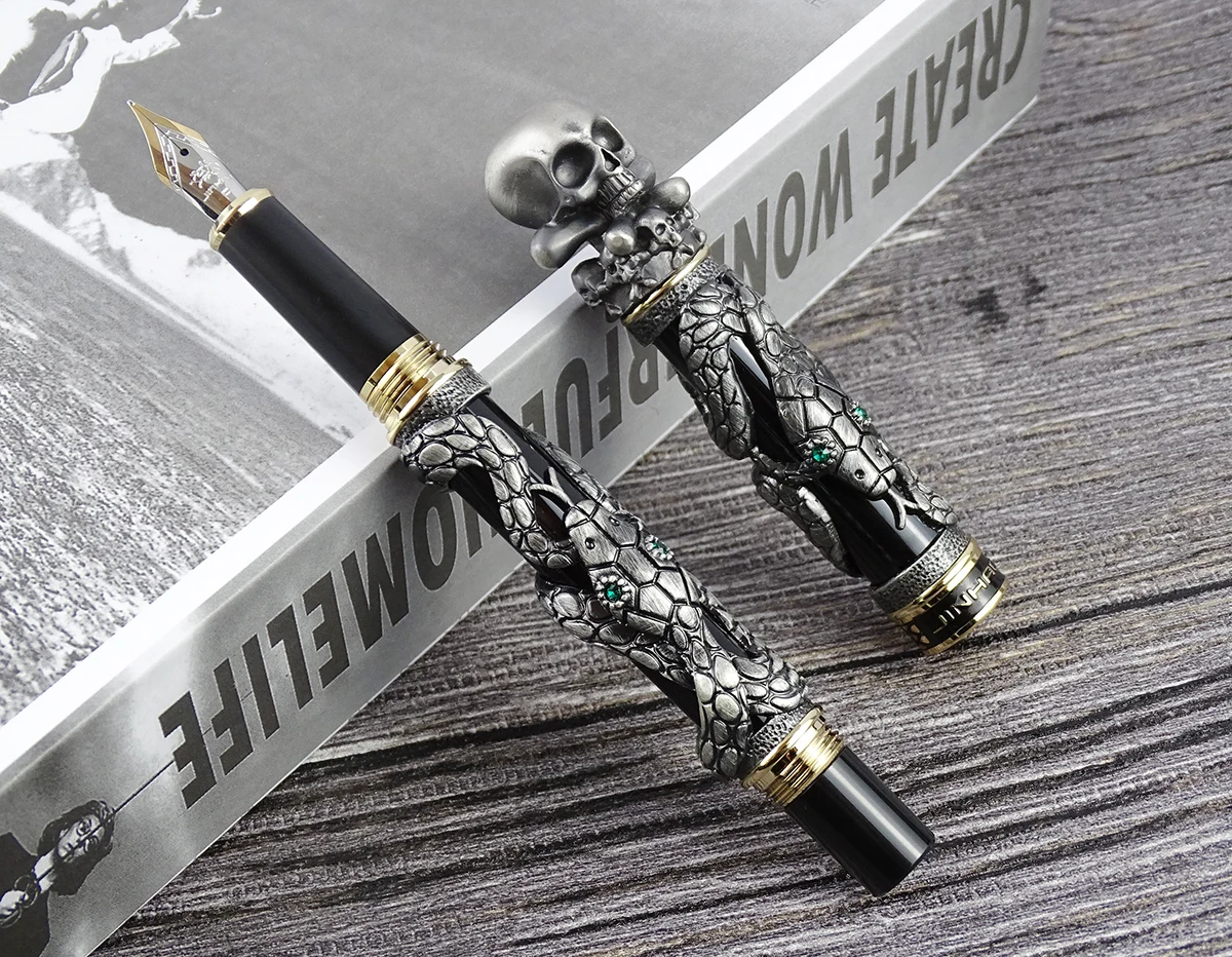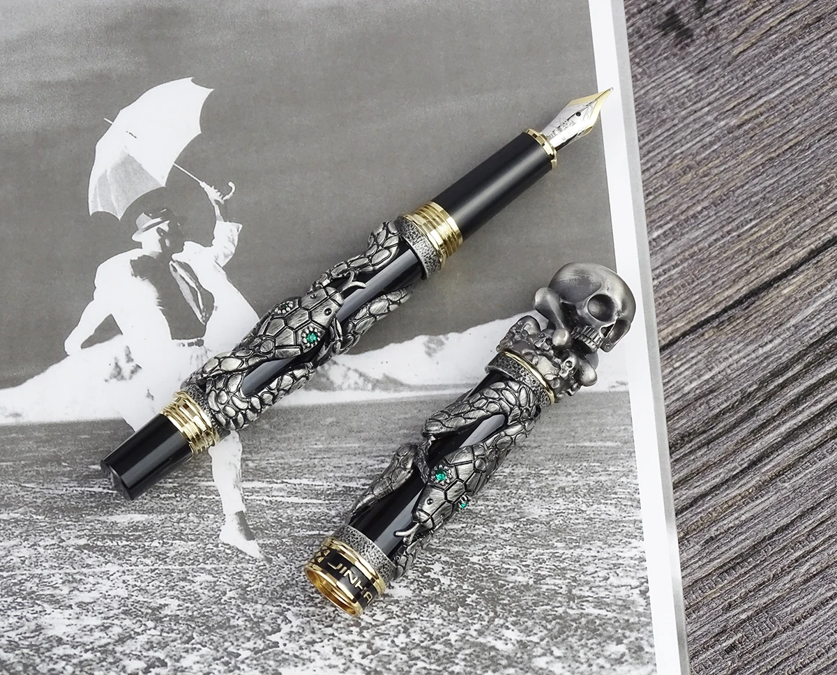 Jinhao металлические Винтаж перьевая ручка "скелетная" тема, уникальный ручка Кепки тонкий наконечник 0,5 мм тяжелый коллекция древняя серый подарочная ручка в деловом стиле: