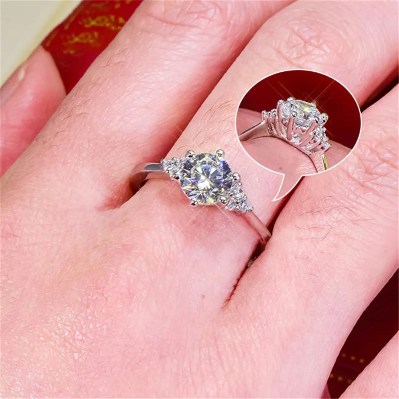 Кольцо женское из серебра 925 пробы, с муассанитом 1-2 карата