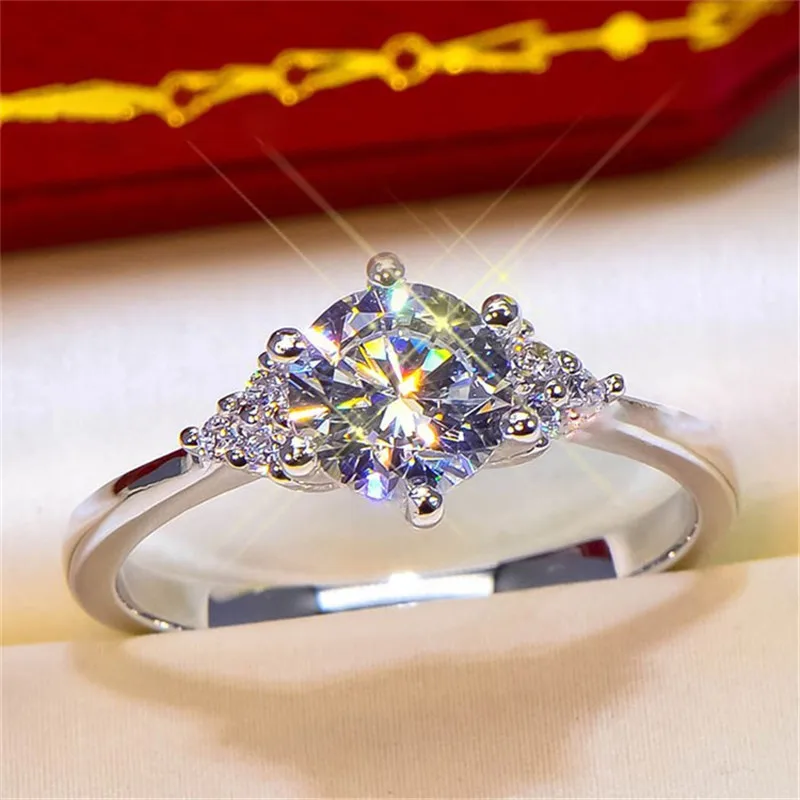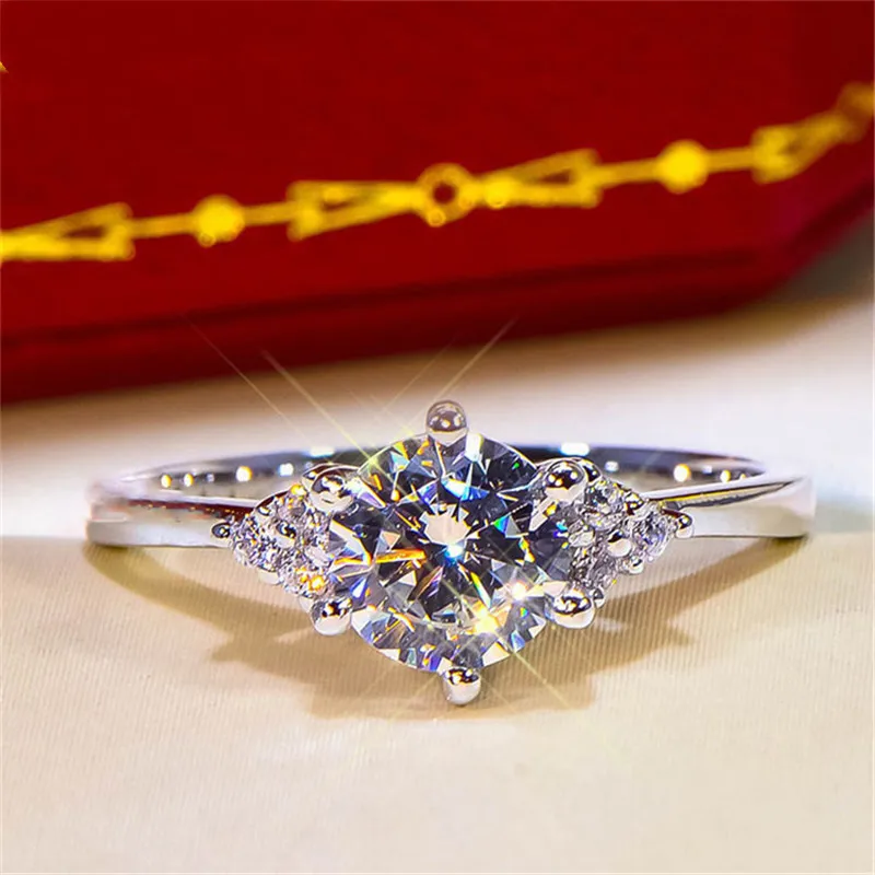 Кольцо inbeaut с муассанитом женское, классическое ювелирное изделие из натуральной платины и серебра 925 пробы, отличная огранка, 1 карат D, цвет пройти тест на бриллиант, свадебная бижутерия