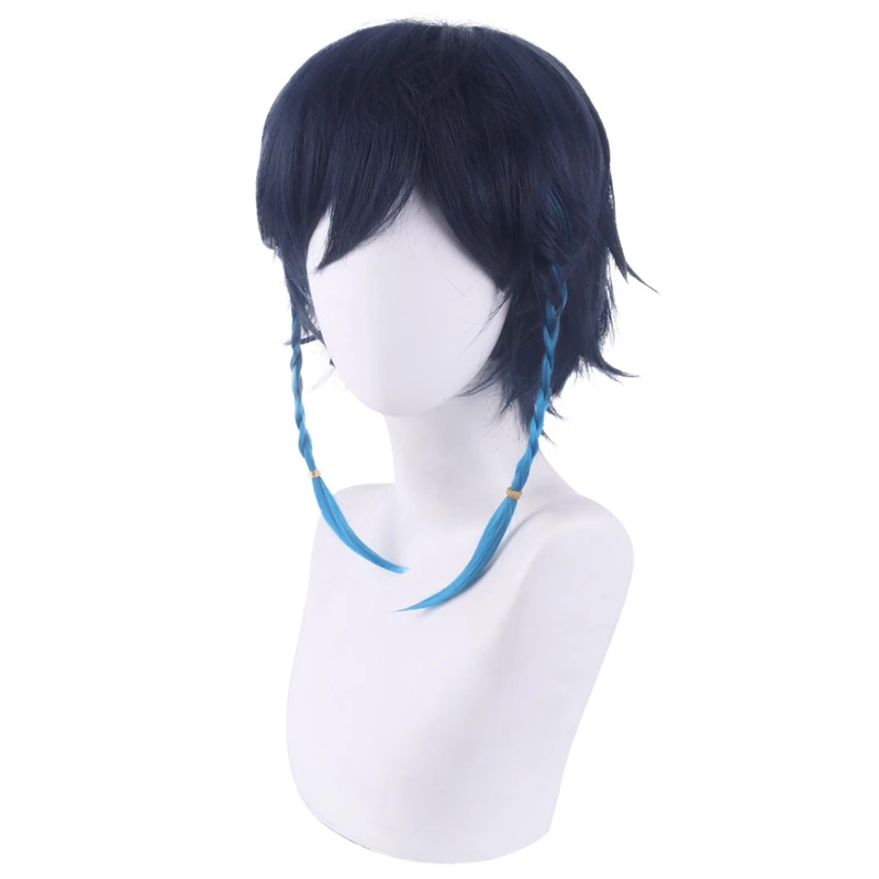 Парики для косплея Game Genshin Impact Venti, синие короткие плетен...