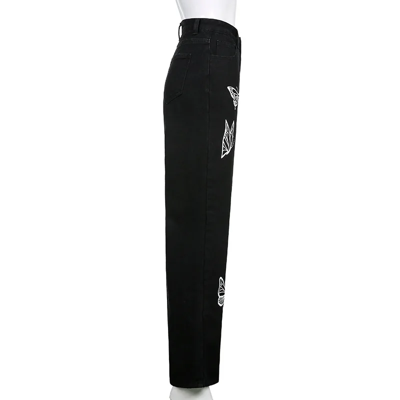 Женские джинсы HEYounGIRL с принтом бабочки, черные повседневные бр...
